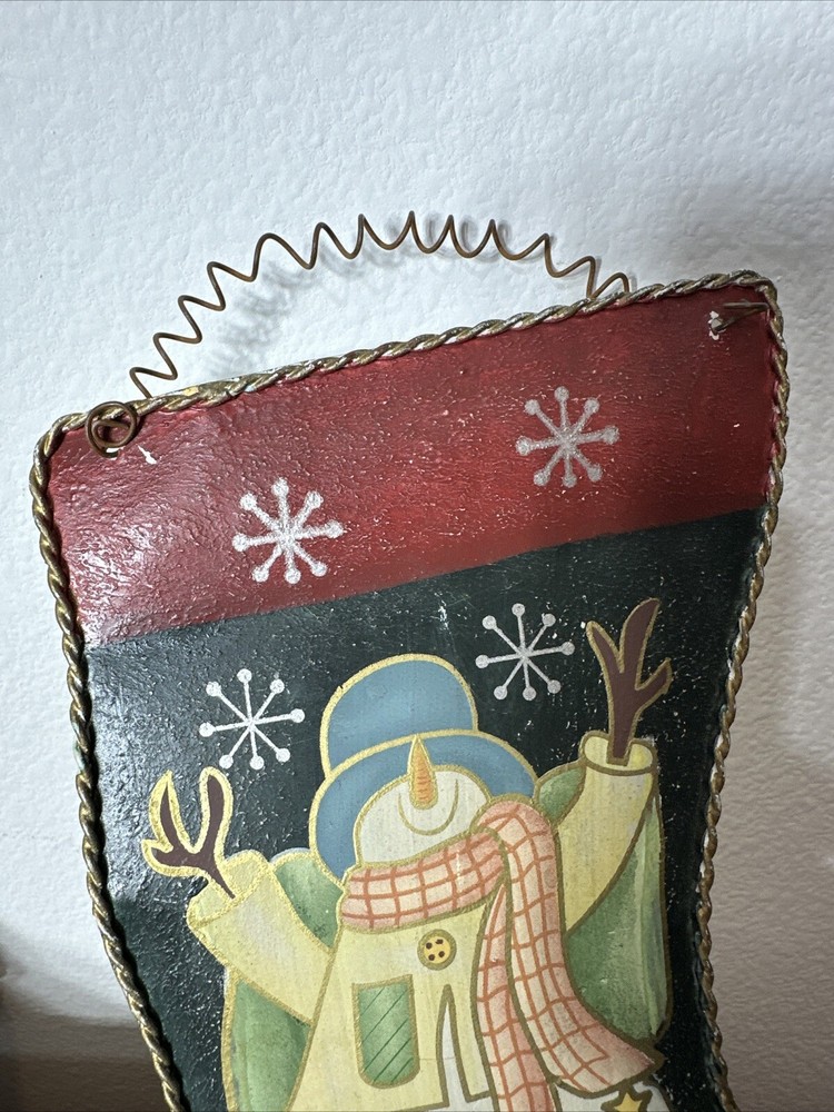 Add a touch of holiday cheer to your home with this beautifully crafted Tin Metal Ornament Christmas Stocking. The stocking features a 3-D hand-painted wire hanger with a snowman design, perfect for hanging on your fireplace mantel or anywhere else in your home. The botanical pattern and multicolor design make this stocking a great addition to any Christmas decor. Made of high-quality tin material, this Christmas stocking is durable and long-lasting. It's small in size, making it perfect for adults and children alike. This stocking is sure to bring joy and happiness to your home this holiday season.