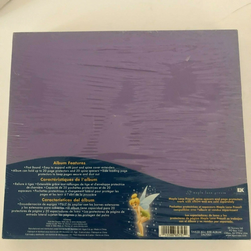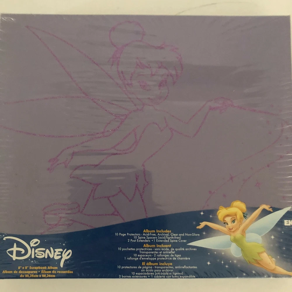 NOS (just remnant glue of price tag on plastic) Disney Scrapbook album Purple Tinkerbell hard cover sealed album includes: 10 Page Protectors - Acid free, archival, clear & non-glare 10 Spine spacers (acid/lignin-free) 2 post extenders 1 extended spine cover Cover has outline of Tinkerbell in glitter pen 8x8 I offer combined shipping - please contact me before buying so I can adjust your invoice for all of your items Buy with confidence. I ship fast (within 24 hours of payment except weekends and holidays) and offer no-hassle returns (must still be sealed) Your overall satisfaction and positive feedback is extremely important to me. If there is any problem with your purchase, simply contact me and I will work with you to resolve the issue quickly. Thank you.