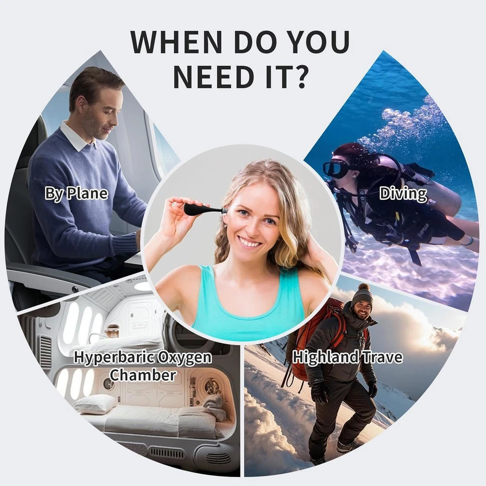 Relieve Ear Discomfort: Ear pressure regulator has a non-invasive design that gently stimulates the inner ear through air pressure, thus relieving ear discomfort caused by stress, high pressure, diving, motion sickness, and flying Widely Applicable: The migraine relief regulator has a wide range of uses, not only suitable for ear pressure discomfort during flights and boats, but also for various scenarios such as mountain climbing and deep-sea diving. It is an ideal companion for your travel, exercise, and daily health care. Silicone Material: Ear pressure relief device is made of soft and high quality silicone material, which fits perfectly with the ear canal and won't harm the eardrum, ensuring you a comfortable and safe experience during use Easy to carry: Tension relieving ear pressure tool is compact and easy to carry, perfect for traveling and daily life, when ear pain, just gently insert into the ear canal and press to solve your discomfort anytime, anywhere! Wide Range of uses: Ear pressure regulator is widely used, whether you are on a plane, car, train, elevator, swimming pool and at home, the ear pressure reliever can safely and easily solve your ear pressure problem.