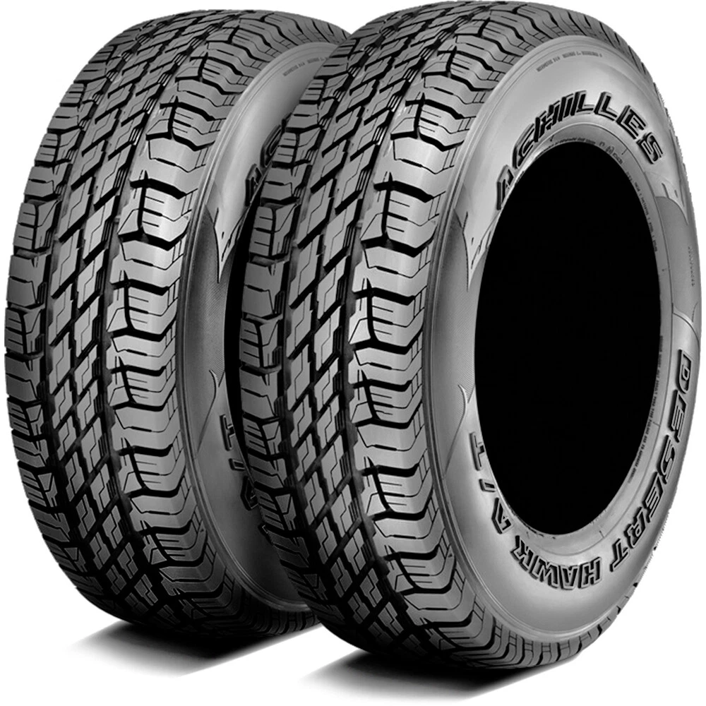 Achilles Desert Hawk A/T FEATURES AND BENEFITS Summer weather traction Hydroplaning resistance All terrain traction On-road comfort Precise steering responsiveness OVERVIEW The Achilles Desert Hawk A/T is an all terrain, summer tire manufactured for SUVs and light trucks. Achilles offers a 45,000 mile treadwear warranty with the SUV sizes of this tire model. Shop Deals Feedback Contact Us Achilles Desert Hawk A/T *Tread pattern & sidewall design may vary from pictures Specifications Brand Achilles Performance All Terrain Model Desert Hawk A/T Season Summer Run Flat No Section Width 205 Size 205/80R16 Season Summer Sidewall BSW: Black Side Wall Aspect Ratio 80 Rim Diameter 16 Load Index 110 Tread Depth N/A Speed Rating S Rebate Available No Load Range XL Seller Notes New UTQG 340AB Overall Diameter 28.9 Car Type Truck/SUV SKU N891063-99 Product Description Attention! Due to the size of the tires, Packages might be SEPARATED in the courier facility and not be DELIVERED on the SAME DAY, even though we do ship them together. Tracking information can be checked by logging on to the courier website with the master tracking number you will receive via email. For example, you can receive 3 tires in one day and the 4th one the next day or the day after, or one tire in one day and the second one day after. We understand that this is a big inconvenience for our buyers, however, this is ABSOLUTELY out of our control. Achilles Desert Hawk A/T FEATURES AND BENEFITS Summer weather traction Hydroplaning resistance All terrain traction On-road comfort Precise steering responsiveness OVERVIEW The Achilles Desert Hawk A/T is an all terrain, summer tire manufactured for SUVs and light trucks. Achilles offers a 45,000 mile treadwear warranty with the SUV sizes of this tire model. This tire offers great summer weather traction and the tread design helps improve its wet and dry weather road grip. The tire, however, will not perform well in winter conditions as the tire compound cannot withstand the colder temperatures. The grooves in the tread design enhance the safety of the tire by dispersing water from beneath its footprint. The tire resists dangerous hydroplaning in this manner. The staggered tread block design of the model improves its all terrain traction. The tire conquers all lose or uneven road surfaces, including dirt, sand and on rocks. The tire was especially created to be driven off-road, but it performs well on-road as well, making it versatile in its use. The tire can be depended on for highway driving, as it provides good on-road traction and low noise and vibration levels. This makes the model capable of handling all terrain surfaces, while at the same time providing a comfortable on-road driving experience. The Desert Hawk A/T's two wide circumferential grooves improve the steering precision and responsiveness. The tire swiftly and accurately responds to the driver's commands, which increases the controllability and handling too. The model is effortless to handle thanks to the excellent steering precision and the constant road contact provided by the shoulder tread block design. Manufacturers recommend changing tires every 10 years. As long as tires are properly stored before they are sold, the year of their manufacture will not shorten their service life. RIM NOT INCLUDED Shipping FAST AND FREE SHIPPING FREE SHIPPING within the lower 48 contiguous States. All orders are shipped with FedEx Ground/Home Delivery. FedEx requires a physical address. We cannot ship to PO BOX, APO, FPO, HI, AK, PR, GU or VI addresses. All Orders placed before 12PM EST (Eastern Standard Time) will be shipped out the SAME DAY. FedEx does not pick up orders on weekends and national holidays. The average delivery time ranges between 1-6 business days. Signature Required delivery will not be processed automatically. Please contact us directly to request Signature Required delivery. Special delivery instructions cannot be provided as FedEx is not able to process them. For Buyers from Missouri or if the order is shipped to Missouri a 4.225% MO sales tax will apply. Sales tax for products that are being shipped to other states is collected and remitted by eBay. For more information see article "Taxes and import charges" Tracking information is made available to the Buyer after an Order is shipped. As the supply chain network is still disrupted due to the current worldwide situation, we're doing everything within our power to ensure orders are shipped as quickly as possible. However, despite our best efforts, shipping and delivery times may change unexpectedly. Please check your Order Status for the most current estimate of the shipping time. Thank you for your patience and understanding. RETURNS EASY NO HASSLE NINETY (90) DAY CUSTOMER SATISFACTION 90 DAYS: We accept Returns within a 90-day period! FULL REFUND: No Restocking Fee will be applied and a Full Refund will be provided if the Item is returned in unused condition. FREE RETURN: Unsatisfied for any reason or just changed your mind? Contact us for help and a hassle-free formal Free Return! FULL ASSISTANCE: If the Item is incorrect, damaged or in any other way not as described, contact us for help! We always work with our Buyers to resolve any issue. By making a purchase, the Buyer agrees to the Production Year (if any) listed in the Item specifics. Prior to submitting the Order, the Buyer must verify that Item specifics are appropriate for their vehicle. Please make sure you are buying the correct Item by double-checking prior to placing an Order; if you need any help please contact our customer service team! By submitting the Order, the Buyer understands that Priority Tire LLC doesn't actually manufacture any Items and simply only sells them (advertising them as accurately as possible) which may lead to slight variance with the received Items. We will be happy to provide a Free Return if you make a mistake while purchasing but note that we reserve the right to not pr