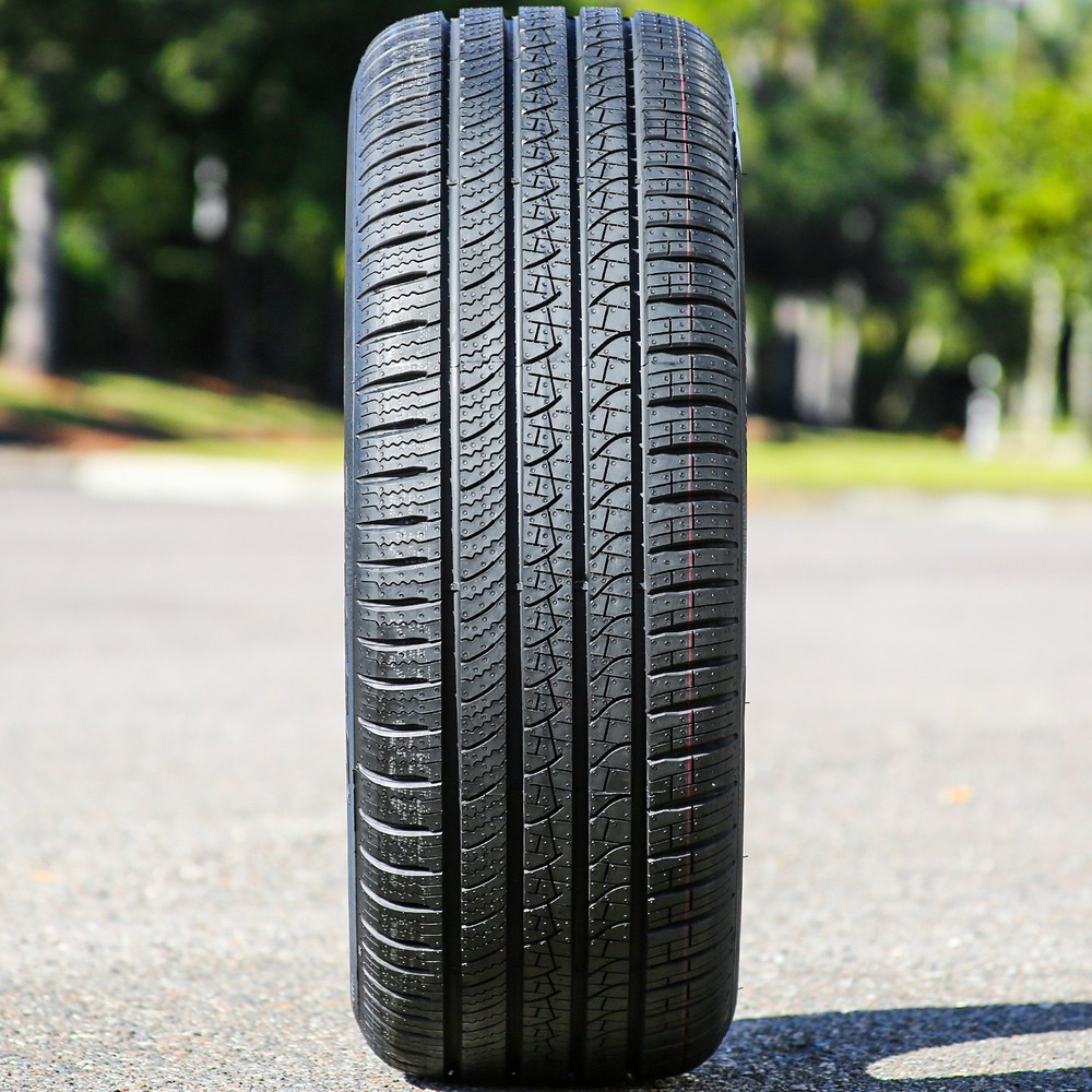 Pirelli P Zero All Season FEATURES AND BENEFITS All weather traction Fuel efficient drive Longer lasting tread life Lowered road noise levels Enhanced cornering ability OVERVIEW The Pirelli P Zero All Season (VOL) is a performance and high performance, all season tire manufactured for passenger vehicles and SUVs. This model is the original equipment tire of select Volvo vehicles. Shop Deals Feedback Contact Us Pirelli P Zero All Season *Tread pattern & sidewall design may vary from pictures Specifications Brand Pirelli Model P Zero All Season Size 235/40R19 Section Width 235 Aspect Ratio 40 Tire Height N/A Rim Diameter 19 Run Flat No Season All Season Performance Performance Car Type Passenger Sidewall BSW: Black Side Wall Load Index 96 Speed Rating V Load Range XL Overall Diameter 26.4 Tread Depth 9/32 UTQG 500AA Rebate Available No Seller Notes New SKU N1570978-99 Product Description Attention! Due to the size of the tires, Packages might be SEPARATED in the courier facility and not be DELIVERED on the SAME DAY, even though we do ship them together. Tracking information can be checked by logging on to the courier website with the master tracking number you will receive via email. For example, you can receive 3 tires in one day and the 4th one the next day or the day after, or one tire in one day and the second one day after. We understand that this is a big inconvenience for our buyers, however, this is ABSOLUTELY out of our control. Pirelli P Zero All Season FEATURES AND BENEFITS All weather traction Fuel efficient drive Longer lasting tread life Lowered road noise levels Enhanced cornering ability OVERVIEW The Pirelli P Zero All Season (VOL) is a performance and high performance, all season tire manufactured for passenger vehicles and SUVs. This model is the original equipment tire of select Volvo vehicles. The tire's tread compound was made with silica to ensure safe all weather traction. The tread design grips the road well in dry, wet and winter weather and it maintains constant road grip. The special tread design features four circumferential grooves, numerous lateral grooves and a detailed siping design. These evacuate water away from the tire footprint and actively prevent hydroplaning situations. This improves the all weather driving safety greatly. The silica-enhanced tire compound also makes the tire more fuel efficient. It lowers the tire's overall weight and, by doing so, it reduces the rolling resistance. The rolling resistance is the force that determines how much energy the vehicle needs to maintain motion and this decreased resistance lessens the vehicle's fuel and energy consumption and CO2 emissions. The decreased rolling resistance also slows down the tread wear rate as the silica in the compound maintains excellent road gripping ability. Furthermore, the tread design spreads the driving pressure out across the tread surface evenly, which prevent irregular wear patterns from forming. The better fuel economy and longer lasting tread wear offer a cost-efficient and environmentally friendly drive. The tread pattern sports a variable pitch sequence that improves the comfort levels. The pitch design negates the road noise generated while the tires are in motion by creating a sound frequency that cancels them out the moment they are produced. This lowers the road noise heard by the passengers in the vehicle's cabin. The reduced road noise levels provide a quiet and comfortable driving experience in all weather. The P Zero All Season (VOL) is easy to control even at high speeds. The shoulder tread block design ensures constant road contact by providing additional biting edges. These work especially well during cornering and maneuvering situations as they do not allow the tire to lose its road contact. The better road contact and cornering ability provides extra security to the all weather drive. Manufacturers recommend changing tires every 10 years. As long as tires are properly stored before they are sold, the year of their manufacture will not shorten their service life. RIM NOT INCLUDED Shipping FAST AND FREE SHIPPING FREE SHIPPING within the lower 48 contiguous States. All orders are shipped with FedEx Ground/Home Delivery. FedEx requires a physical address. We cannot ship to PO BOX, APO, FPO, HI, AK, PR, GU or VI addresses. All Orders placed before 12PM EST (Eastern Standard Time) will be shipped out the SAME DAY. FedEx does not pick up orders on weekends and national holidays. The average delivery time ranges between 1-6 business days. Signature Required delivery will not be processed automatically. Please contact us directly to request Signature Required delivery. Special delivery instructions cannot be provided as FedEx is not able to process them. For Buyers from Missouri or if the order is shipped to Missouri a 4.225% MO sales tax will apply. Sales tax for products that are being shipped to other states is collected and remitted by eBay. For more information see article "Taxes and import charges" Tracking information is made available to the Buyer after an Order is shipped. As the supply chain network is still disrupted due to the current worldwide situation, we're doing everything within our power to ensure orders are shipped as quickly as possible. However, despite our best efforts, shipping and delivery times may change unexpectedly. Please check your Order Status for the most current estimate of the shipping time. Thank you for your patience and understanding. RETURNS EASY NO HASSLE NINETY (90) DAY CUSTOMER SATISFACTION 90 DAYS: We accept Returns within a 90-day period! FULL REFUND: No Restocking Fee will be applied and a Full Refund will be provided if the Item is returned in unused condition. FREE RETURN: Unsatisfied for any reason or just changed your mind? Contact us for help and a hassle-free formal Free Return! FULL ASSISTANCE: If the Item is incorrect, damaged or in any other way not as described, contact us for help! We always work with our Buyers to 