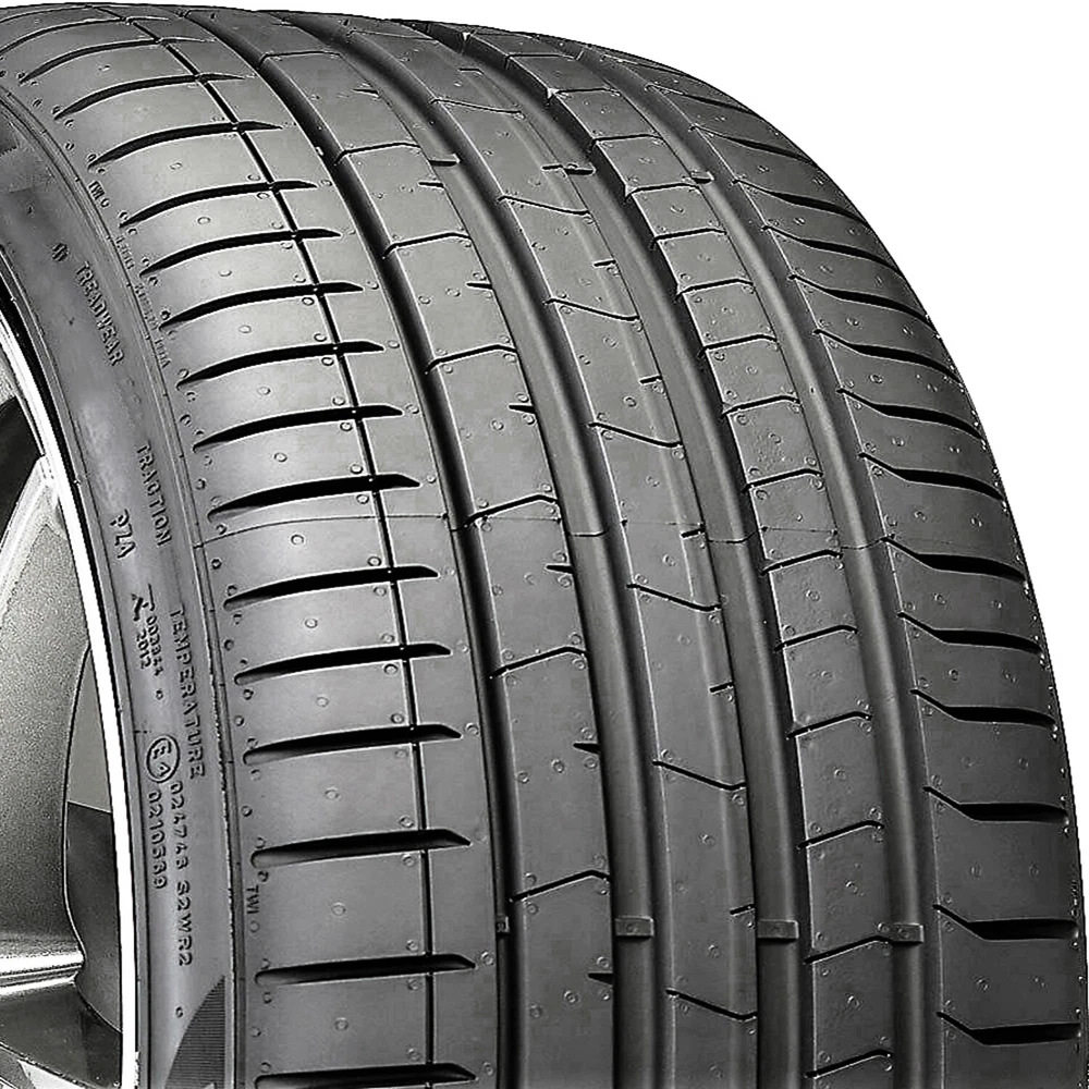 Pirelli P Zero (PZ4) FEATURES AND BENEFITS Summer weather traction Sport and Luxury vehicle adaptability Hydroplaning resistance Maintained optimal tire shape Enhanced controllability OVERVIEW The Pirelli P Zero (PZ4) (*) is a performance and high performance, summer tire manufactured for luxury and performance vehicles, depending on the tread design. The tire was designed using Pirelli's knowledge and experience gathered from Formula 1 racing. It is the original equipment tire for select BMW vehicles. Shop Deals Feedback Contact Us Pirelli P Zero (PZ4) *Tread pattern & sidewall design may vary from pictures Specifications Brand Pirelli Performance High Performance Model P Zero (PZ4) Season Summer Run Flat No Section Width 275 Size 275/35R23 Season Summer Sidewall BSW: Black Side Wall Aspect Ratio 35 Rim Diameter 23 Load Index 108 Tread Depth 9/32 Speed Rating Y Rebate Available No Load Range XL Seller Notes New UTQG 280AAA Overall Diameter 30.6 Car Type Truck/SUV SKU N1575802-99 Product Description Attention! Due to the size of the tires, Packages might be SEPARATED in the courier facility and not be DELIVERED on the SAME DAY, even though we do ship them together. Tracking information can be checked by logging on to the courier website with the master tracking number you will receive via email. For example, you can receive 3 tires in one day and the 4th one the next day or the day after, or one tire in one day and the second one day after. We understand that this is a big inconvenience for our buyers, however, this is ABSOLUTELY out of our control. Pirelli P Zero (PZ4) FEATURES AND BENEFITS Summer weather traction Sport and Luxury vehicle adaptability Hydroplaning resistance Maintained optimal tire shape Enhanced controllability OVERVIEW The Pirelli P Zero (PZ4) (*) is a performance and high performance, summer tire manufactured for luxury and performance vehicles, depending on the tread design. The tire was designed using Pirelli's knowledge and experience gathered from Formula 1 racing. It is the original equipment tire for select BMW vehicles. Depending on the type of vehicle the tire is mounted on, sport or luxury model, the shoulder tread pattern reacts differently. If the car is a performance model the outer shoulder tread design enhances the dry weather traction, the summer weather road grip and the lateral stability which together boost the vehicle's performing capability. With luxury-oriented models the outer shoulder design improves the road vibration and road noise levels by lowering their presence in the vehicle's cabin and it increases the hydroplaning resistance. The tire has exceptional summer weather traction thanks to the combined efforts of the silica and carbon black tire compound and the asymmetric tread pattern. They grip the road well in dry and wet weather, but they will not perform well in winter weather conditions. The silica and carbon black compound is not able to maintain its remarkable traction in lower temperatures. The circumferential and wide lateral grooves prevent hydroplaning situations by channeling water away from the footprint, making the drive safer. The P Zero (PZ4) (*)'s internal structure features twin steel belts reinforced with hybrid nylon and Kevlar Zero Degree cap ply. They maintain the tire's optimal shape under the driving pressure. As the tire does not deform under the driving forces, it is capable of effortlessly performing at high speeds. The optimal tire shape and the constant road contact enhance the steering responsiveness and driving stability. The tire becomes more responsive to the driver's commands, ensuring an easily controllable tire. Manufacturers recommend changing tires every 10 years. As long as tires are properly stored before they are sold, the year of their manufacture will not shorten their service life. RIM NOT INCLUDED Shipping FAST AND FREE SHIPPING FREE SHIPPING within the lower 48 contiguous States. All orders are shipped with FedEx Ground/Home Delivery. FedEx requires a physical address. We cannot ship to PO BOX, APO, FPO, HI, AK, PR, GU or VI addresses. All Orders placed before 12PM EST (Eastern Standard Time) will be shipped out the SAME DAY. FedEx does not pick up orders on weekends and national holidays. The average delivery time ranges between 1-6 business days. Signature Required delivery will not be processed automatically. Please contact us directly to request Signature Required delivery. Special delivery instructions cannot be provided as FedEx is not able to process them. For Buyers from Missouri or if the order is shipped to Missouri a 4.225% MO sales tax will apply. Sales tax for products that are being shipped to other states is collected and remitted by eBay. For more information see article "Taxes and import charges" Tracking information is made available to the Buyer after an Order is shipped. As the supply chain network is still disrupted due to the current worldwide situation, we're doing everything within our power to ensure orders are shipped as quickly as possible. However, despite our best efforts, shipping and delivery times may change unexpectedly. Please check your Order Status for the most current estimate of the shipping time. Thank you for your patience and understanding. RETURNS EASY NO HASSLE NINETY (90) DAY CUSTOMER SATISFACTION 90 DAYS: We accept Returns within a 90-day period! FULL REFUND: No Restocking Fee will be applied and a Full Refund will be provided if the Item is returned in unused condition. FREE RETURN: Unsatisfied for any reason or just changed your mind? Contact us for help and a hassle-free formal Free Return! FULL ASSISTANCE: If the Item is incorrect, damaged or in any other way not as described, contact us for help! We always work with our Buyers to resolve any issue. By making a purchase, the Buyer agrees to the Production Year (if any) listed in the Item specifics. Prior to submitting the Order, the Buyer must verify that Item specifics are appropriate for their 