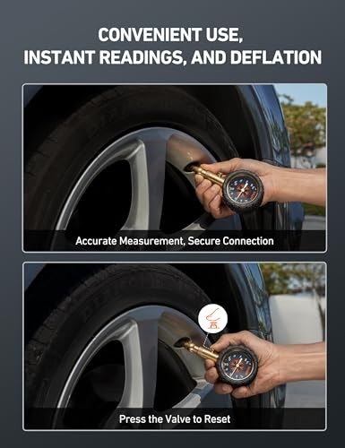 Return Policy Fast Delivery Trusted seller Tire Pressure Gauge 6-170 PSI, Large 2" Easy Read Glow Dial Tire Gauge, Certified ANSI B40.1(1%) Accurate, Compatible for Bicycle, Car, SUV, Truck & Motorcycle Product Description High Accuracy: The Tire Pressure Gauge accurately measures from 6-170 PSI. With certified ANSI B40.1(1%) accuracy and professional calibration, it always returns precise tire pressure readings, eliminating guesswork with a large 2" glow dial. Superior Quality: The built-to-last heavy-duty tire pressure gauge provides excellent performance with stainless steel construction and brass components. Its glow-in-the-dark dial makes it easy to check tire pressure in dim areas. Air Leakage Prevention: The 360-degree swivel chuck and durable rubber hose are flexible enough to form a tight seal with tire valve stems, ensuring no air leakage. This gauge easily reaches awkward valves on cars, trucks, and motorcycles. Universal Compatibility: The Tire Pressure Gauge is compatible with cars, trucks, SUVs, motorcycles, bicycles, and anything else with a Schrader Valve. Enhanced Safety: Proper tire pressure is vital to safe driving, it helps prevent accelerated tire wear that leads to frequent replacement. Tire Pressure Gauges accurately measure your tire pressure to ensure your safety on every trip. Shipping Returns Payment Shipping Shipping is FREE to all addresses other than APO/PO boxes in the lower 48 states. All our stock ships from US-based warehouses. Shipped via USPS or UPS (depending on location and package weight) Unless stated otherwise, all orders will ship within 24-72 hours of your payment being processed. Check our feedback to see the great reviews of FAST shipping we offer. Returns Seller does not accept returns Payment We currently accept payment via eBay managed payments only. Once payment is cleared, we will dispatch your shipment within 1-3 business days. Please refer to the "Shipping" tab for more information regarding shipping speed to your destination.