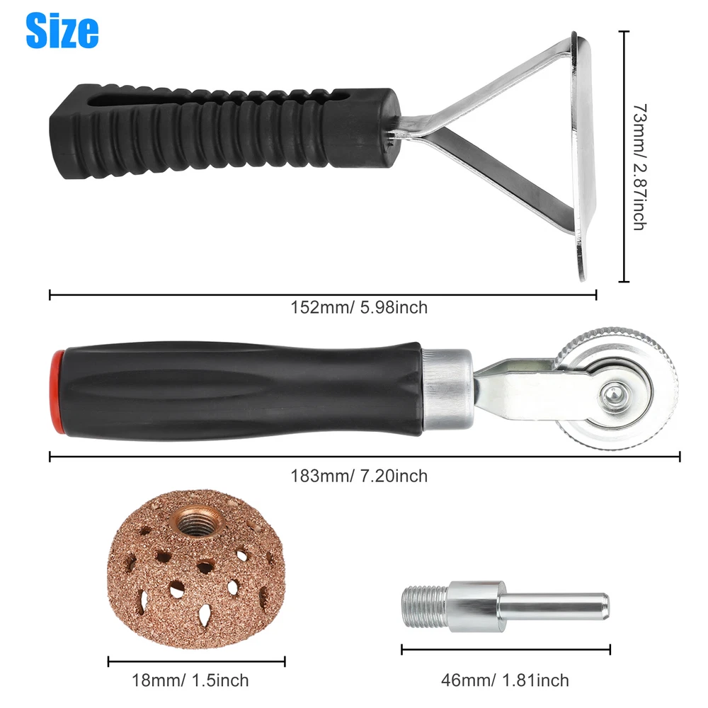 Product Features High Performance Feature: Our Tungsten Buffing Wheels are crafted with premium tungsten alloy, a wear-resistant material that ensures exceptional durability and extended service life. Superb Craftsmanship: Our Tire Buffing Wheels, Tungsten Steel Buffing Wheel, Low-speed hexagonal connecting rod, high-speed circular connecting rod, and Scraping Cutter are meticulously crafted to meet a range of needs. The versatile combined set offers practicality and wider applicability. Size Details: The tungsten buffing wheel has a diameter of approximately 42 mm/1.65 inches, while the tire patch roller measures about 7 mm/0.28 inches in thickness and 18 cm/7.09 inches in overall length. Easy Installation: Effortlessly install our tungsten steel polishing wheel to efficiently roughen tires, enabling fast grinding and saving you time and effort during tire repairs. The Tire Patch Rollers Wheels feature a combination of plastic and metal construction, designed to roll down inner tube and tire repair patches to eliminate trapped air. Widely Applicable: Our tire repair tools are designed for rolling tire and tube patches, ensuring secure adhesion during tire repairs. These tools find extensive applications in auto beauty maintenance and beyond. How To Use 1️⃣ Remove the tire and clean it. 2️⃣ Polish and grind the worn areas of the tires 3️⃣ Apply glue evenly and fill in the tire repair patch 4️⃣ Rolling with tire patch roller for adhesion and sealing Product Specification The Liner Scraper Material Metal + Rubber Size 15cm x 7.4cm/5.91" x 2.91" (Approx.) Tire Repair Buffing Wheel Material Tungsten steel Dimensions 1.65in/ 42mm in diameter, Hexagonal Rod Tire Patch Roller Material Plastic, alloy steel Dimensions 7mm/0.28 in(Thickness) and 18cm/7.09 in(length) Package Included 1 x Tire patch roller 1 x Liner Scraper 1 x Tire repair buffing wheel