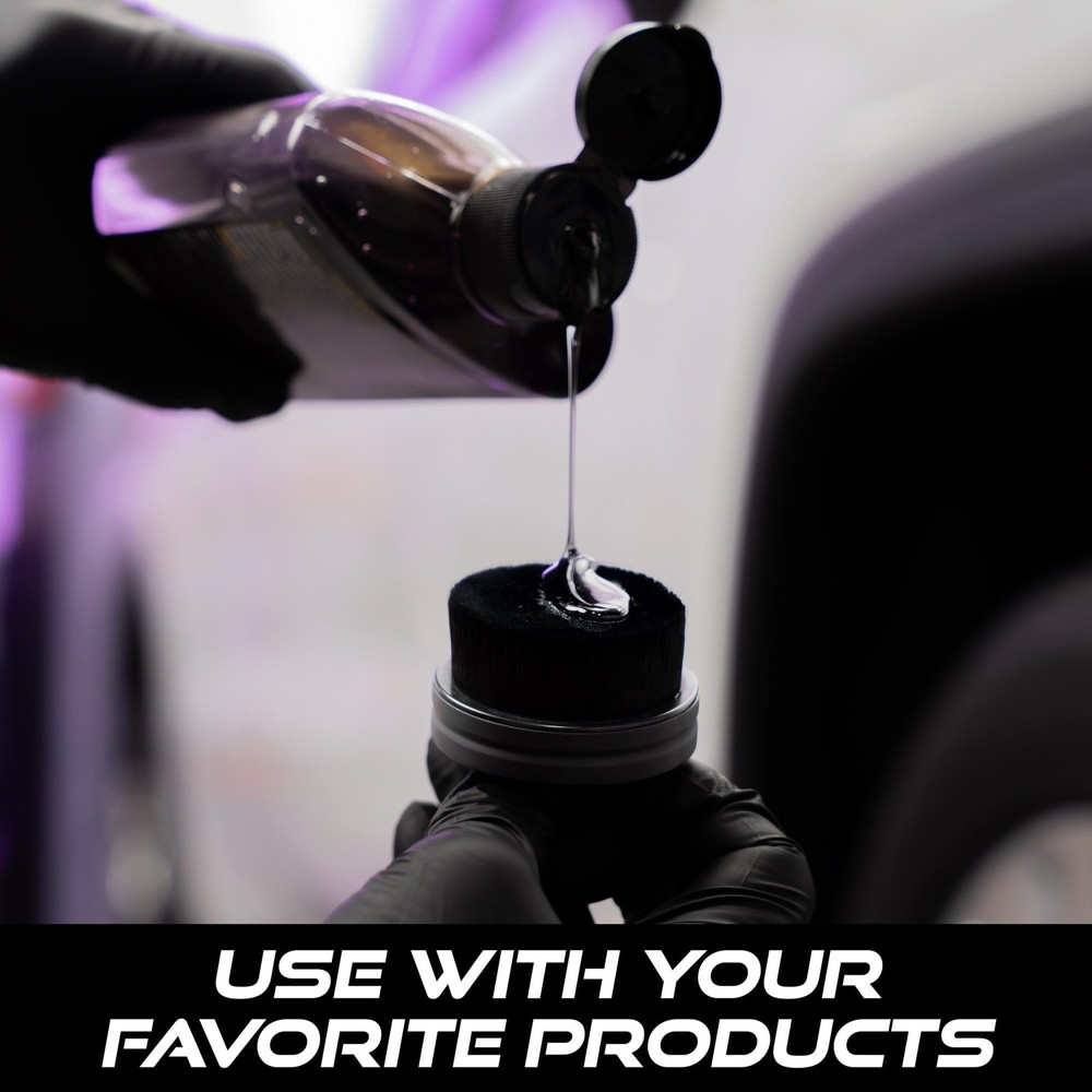 The Tire Shine Applicator Brush features ultra-soft, dense nylon bristles that glide over your tire and into lettering and raised designs for a smooth, even application after a car wash. The ergonomic handle of the tire applicator pads is comfortable to hold so you can apply your tire dressing with precision. After using the tire gel pad, rinse the brush thoroughly with water and place into the convenient stand for drying and storage with other car accessories in your car detailing kit and car stuff. You'll have the best dressed wheels using the tire brush for tire shine. Many things in life have gotten too complex but cleaning your car shouldn’t be. Here at we believe nothing is more satisfying than driving a clean car, both inside and out. We want to keep the process easy and enjoyable without breaking the bank. We pride ourselves on providing a comprehensive line of quality car cleaning accessories at prices you’ll love. Let’s face it, a clean car feels good and makes you feel even better. Includes one soft bristle cleaning brush for applying tire shine and one convenient storage stand measuring 2.3 inches in diameter, which will become essential in your car cleaning kit The tire applicator brush features ultra-soft and dense bristles that easily glide over your tire for an even and precise application, even over lettering and raised designs The ergonomic handle is easy and comfortable to hold while the compact size of the tire brush is great for use on all profiles of tires for a professional tire dressing The included stand is perfect to store the car tire shine applicator when not in use with other car accessories; it also helps to protect the bristles so the tire shine brush is always ready to use Use the tire shine applicator pad with your favorite tire shine, tire shine spray, tire dressing, protectant, or other car essentials for the best application