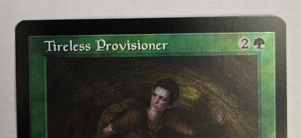 Delve into the mystical realms of Modern Horizons with the Tireless Provisioner, an uncommon elf creature card that can bolster your deck with its unique abilities. Adorned with a stunning foil finish, this card features artwork by the talented Josu Hernaiz, capturing the enchanting essence of the retro frame design. With an attack power of 3 and defense toughness of 2, the Tireless Provisioner, card number 15, is a formidable addition to your strategic lineup. Costing only 2 green mana, this card can provide sustainable advantage throughout your duels, all while being produced by the renowned Wizards of the Coast. Enhance your collection with this English-language treasure from the Modern Horizons set.