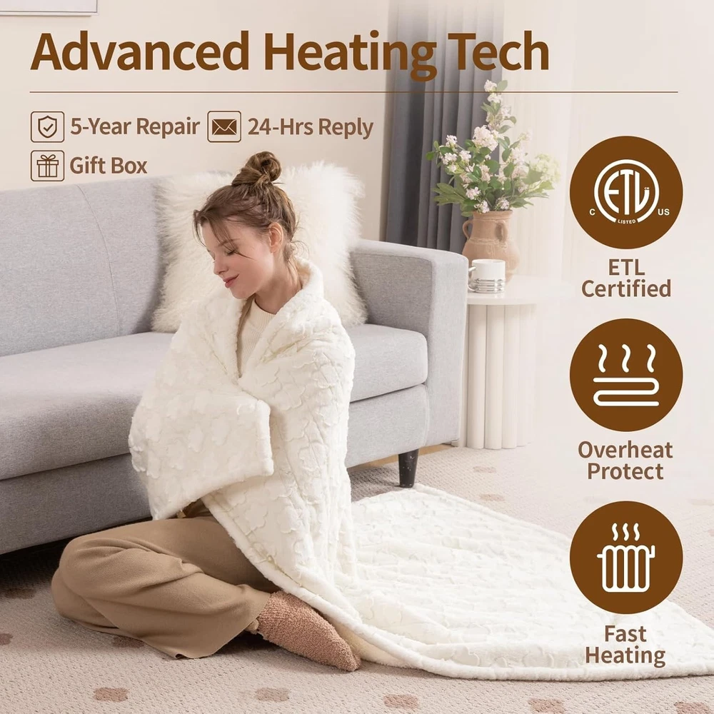Ultra Soft Heated Throw with Gift Box - 6 Heat Levels & Floral Design 50"x60" ‹ › ‹ › ‹ › ‹ › ‹ › ‹ › ‹ › ‹ › ‹ › ‹ › Ultra Soft Heated Throw with Gift Box - 6 Heat Levels & Floral Design Indulge in an unparalleled experience of warmth and elegance with our Ultra Soft Heated Throw. Perfect for staying cozy on chilly evenings, this luxurious blanket is designed to envelop you in comfort while enhancing your home decor. Features: Luxurious Floral Faux Fur and Sherpa Design: A stunning floral faux fur front paired with a sumptuously soft sherpa reverse creates a plush and inviting surface. 6 Heat Settings with Adjustable Temperature: Easily customize your warmth with settings ranging from 90 to 108℉ to suit your personal comfort. Auto Shut-Off and ETL Certified for Safety: Built-in 4-hour auto shut-off feature ensures safety and energy efficiency, giving you peace of mind. Machine Washable: Easy to clean for a fresh and hygienic experience, requiring minimal effort. Thoughtfully Designed Gift Box: Comes beautifully packaged, making it an ideal gift for those who cherish warmth and sophistication. No-Worry Purchase: Our 24/7 customer service is here to assist you with any quality concerns for up to 5 years. Benefits: Luxurious comfort and warmth to elevate your relaxation experience. Elegant floral design enhances any room, making it a chic addition to your home. Personalized temperature settings for ultimate coziness. Safe to use with reliable auto shut-off features. An exceptional gift that shows you care, beautifully packaged for your loved ones. Why choose our Ultra Soft Heated Throw? Step into a world of luxury with our Ultra Soft Heated Throw, designed not only for warmth but for an aesthetic upgrade to your home. With its exquisite floral design, 6 customizable heat levels, and unmatched softness, you'll find yourself wrapped in elegance. Whether for yourself or as a thoughtful gift, this throw blanket promises to deliver comfort, style, and safely every time you need it. Don't let the cold weather catch you off guard; indulge in the warmth of a Electric Blanket today! Shipping Free & Fast Shipping - We offer free shipping to most of the USA with a normal delivery time of 3-7 days. However, due to the current situation, additional delivery time (up to 3 weeks) may be required for some items. Alternative Carriers - We may use alternative carriers (e.g. USPS, FedEx, UPS, etc.) to ensure your package arrives safely and on time. Due to the use of multiple carriers, we are unable to provide a tracking number automatically. Handling Time - Orders are processed and shipped within 1-2 business days of receiving cleared payment. Shipping Restrictions - Shipping to Alaska, Hawaii, Puerto Rico, Guam, and other US territories may incur shipping charges or delivery restrictions. Please contact us before ordering, or your order can be refunded/cancelled. State Restrictions - There may be restrictions based on your state of purchase. For example, certain items may not be shipped to California due to state regulations. Contact for Tracking Updates - If you require tracking updates or have any concerns about the delivery of your order, please feel free to contact us, and we will be happy to assist you. Return 30-Day Hassle-Free Returns - We want you to be completely satisfied with your purchase. If you are not, you can return the item within 30 days of receiving it for a full refund or exchange. Easy Return Process - To start a return, simply contact us and we will provide you with a prepaid return shipping label and detailed instructions. Restocking Fee - There are no restocking fees for returns. However, the buyer is responsible for return shipping costs if the return is not due to a seller's error. Refund Processing Time - Refunds will be processed within 5 business days of receiving the returned item in its original condition. Payment We accept all major credit cards, PayPal, and Apple Pay for your convenience. Your payment information is secure and encrypted to ensure a safe and seamless transaction. Please complete your payment within 3 days of purchase to avoid any delays in shipping. Feedback Your feedback is extremely important to us. We strive to provide the best products and customer service possible. If you are satisfied with your purchase, please take a moment to leave us a positive review. If you have any concerns or issues with your order, please contact us before leaving negative feedback. We are committed to resolving any problems and ensuring your satisfaction. Contact Us If you have any questions or concerns, please feel free to reach out to our customer support team. You can contact us through the eBay messaging system. We are available Monday to Friday, 9:00 am to 5:00 pm EST, and we will do our best to respond to your inquiry within 24 hours. Buy it now and enjoy a pleasant shopping experience! UPC: Not Set Item Length: Not Set Item Width: Not Set Unit Quantity: 1 Material: Faux Fur,Sherpa Features: Heated,Auto Shut-Off,4h Auto-Off Timer,6 Heating Levels,Ultra Soft Theme: Floral Character: Not Set Care Instructions: Machine Wash Department: Kids,Teens,Adults Room: Bedroom,Living Room Labels & Certifications: Not Set Brand: Unbranded Size: 50 x 60 in Type: Electric Throw Blanket Character Family: Not Set Color: White Pattern: Floral Style: Modern MPN: Not Set Country/Region of Manufacture: Not Set Insulation: Warm Shape: Rectangular Closure Type: No Closure Product Line: Not Set Drop Length: Not Set GSM (Grams per Square Meter): Below 150 Model: Not Set Thread Count: 200 or Less Unit Type: Unit Personalize: Not Set
