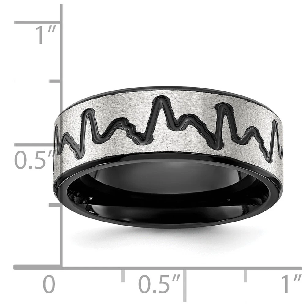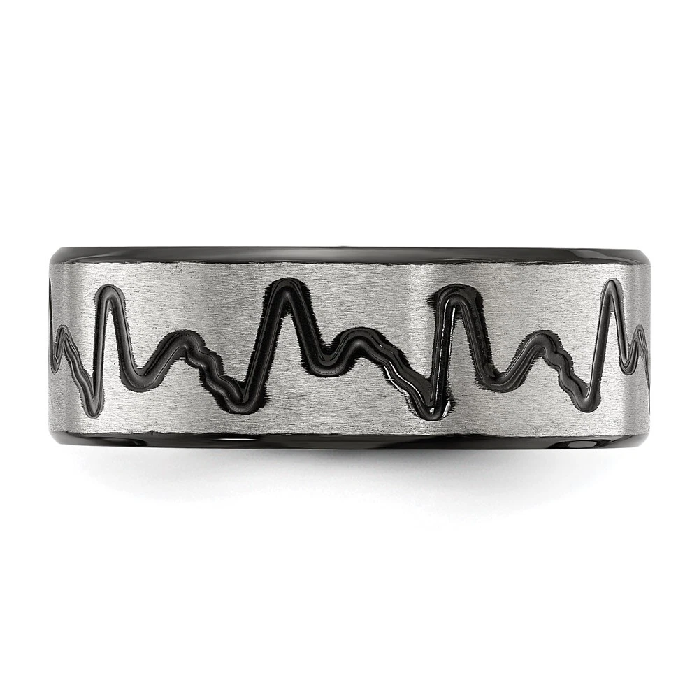 Titanium Brushed Black IP-plated Heartbeat 8mm Band Ring Size 11