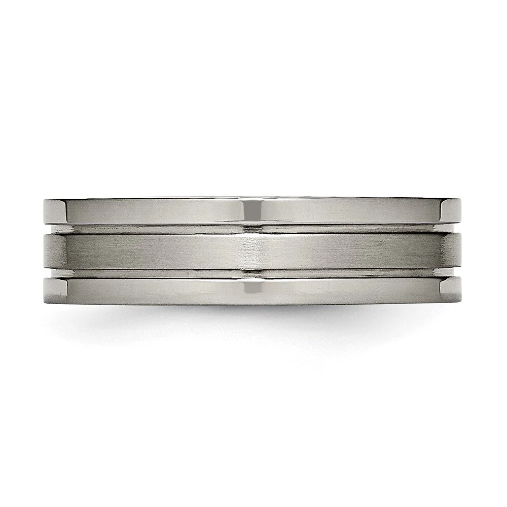 Finish:Polished & Brushed|Band Width:6 mm|Material: Primary:Titanium|Ring Fit:Standard|Sizeable:No|Item Weight U/M:gm|Width of Item:6 mm|Engravable:Yes|Packaging:Gift Pouch|Product Type:Jewelry|Jewelry Type:Rings|Sold By Unit:Each|Gender:Unisex|Texture:Grooved|Material: Primary - Color:Grey|Ring Type:Wedding Bands|Edge Type:Flat|Ring Shape:Flat All weights and measurements are approximate and may vary slightly from the listed information. Welcome to diamond_6720 Payments We accept all Ebay approved payment. Please sent the payment to us within 8 days after the auction has ended, or you will have unpaid case auto open by eBay. Shipping Policy We will ship all items within 1 business days of purchase during the work week (M-F) excluding holidays. If you order on Friday, your order will be shipped the following business day. Tracking will be provided when it becomes available. We will only ship to a PayPal Verified Address. Please make sure your address is current and correct. If the information does not match, your order may be canceled. Buyers are responsible for all customs, duties and taxes for your respective countries. Delivery times for International Shipping will vary. California Buyers Pay 9.0% Tax on all orders. case auto open by eBay. Return Policy & Exchange Returns or Exchange are accepted. Buyer must contact us within 30 days after the item is received. Item must be returned in unworn and resalable condition. We will only issue a refund for the purchase price, excluding any shipping fees. If we are at fault, we will provide a full refund. Buyer is responsible for all return shipping costs. BUYERS FEEDBACK If you have any concerns regarding your purchase, please contact us via eBay Message, we assure you that a satisfactory resolution will be reached. Your feedback is very important to us Do remember to give us 5 star rating(*****) if you are satisfied with our product & service .