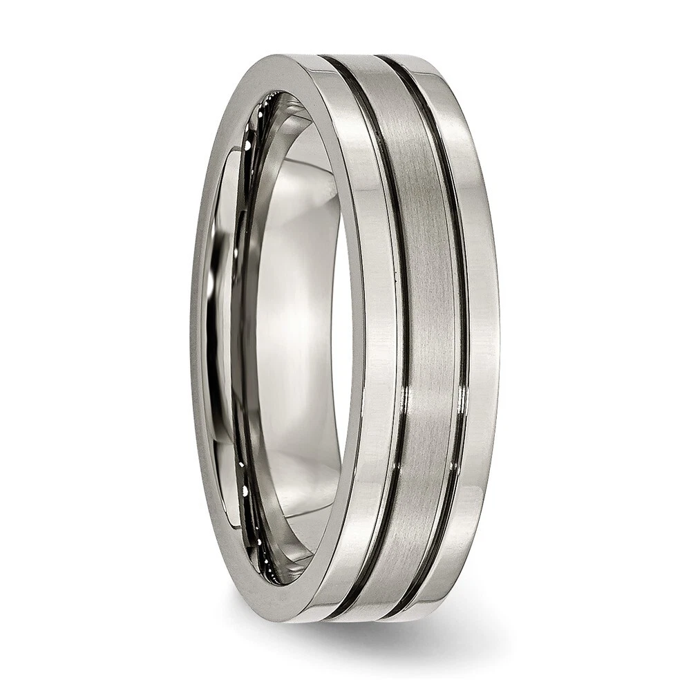 Titanium Brushed Center 6mm Grooved Band Ring Size 9 for Men 3.46gm