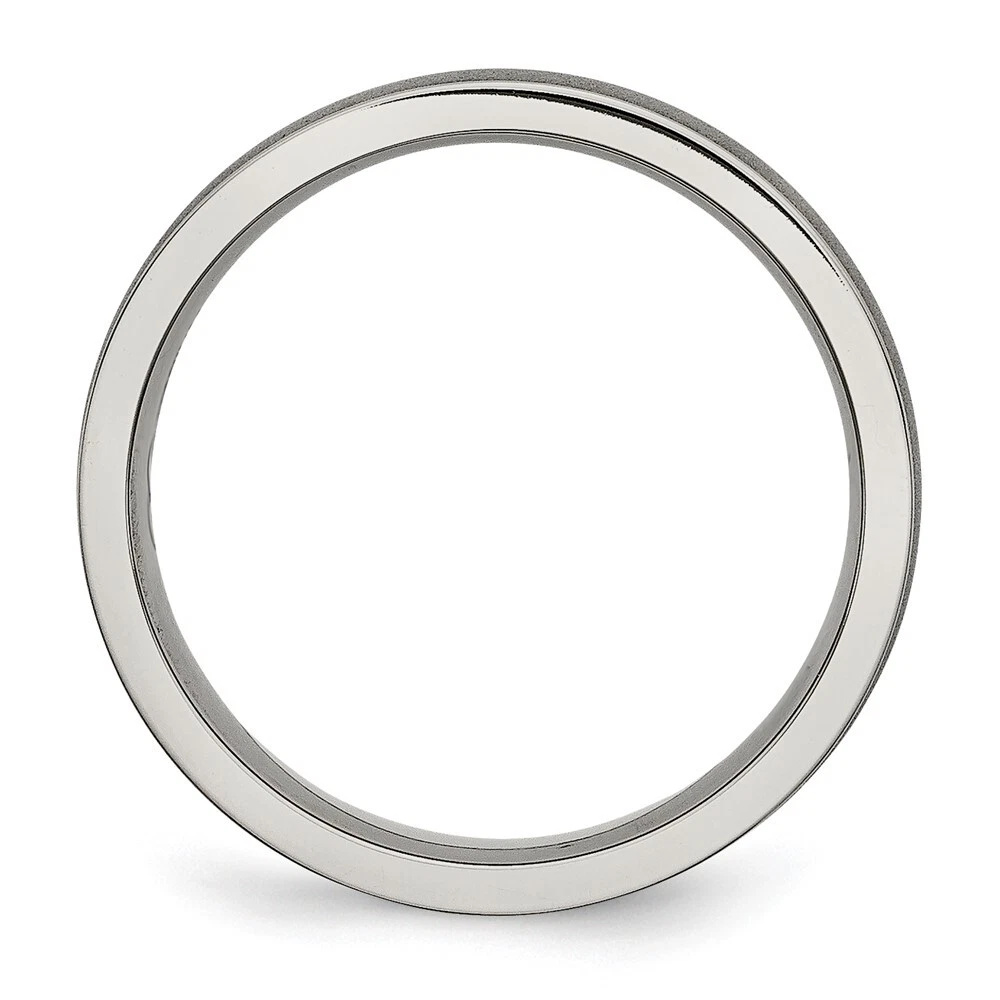 Titanium Brushed Center 6mm Ridged Edge Band Ring Size 8 for Men 3.3gm