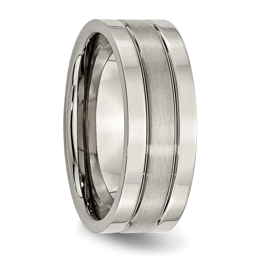 Finish:Polished & Brushed|Band Width:8 mm|Material: Primary:Titanium|Ring Fit:Standard|Sizeable:No|Thickness:< 2 mm|Item Weight U/M:gm|Width of Item:8 mm|Engravable:Yes|Packaging:Gift Pouch|Product Type:Jewelry|Jewelry Type:Rings|Sold By Unit:Each|Gender:Unisex|Texture:Grooved|Material: Primary - Color:Grey|Ring Type:Wedding Bands|Edge Type:Flat|Ring Shape:Flat All weights and measurements are approximate and may vary slightly from the listed information. Welcome to diamond_6720 Payments We accept all Ebay approved payment. Please sent the payment to us within 8 days after the auction has ended, or you will have unpaid case auto open by eBay. Shipping Policy We will ship all items within 1 business days of purchase during the work week (M-F) excluding holidays. If you order on Friday, your order will be shipped the following business day. Tracking will be provided when it becomes available. We will only ship to a PayPal Verified Address. Please make sure your address is current and correct. If the information does not match, your order may be canceled. Buyers are responsible for all customs, duties and taxes for your respective countries. Delivery times for International Shipping will vary. California Buyers Pay 9.0% Tax on all orders. case auto open by eBay. Return Policy & Exchange Returns or Exchange are accepted. Buyer must contact us within 30 days after the item is received. Item must be returned in unworn and resalable condition. We will only issue a refund for the purchase price, excluding any shipping fees. If we are at fault, we will provide a full refund. Buyer is responsible for all return shipping costs. BUYERS FEEDBACK If you have any concerns regarding your purchase, please contact us via eBay Message, we assure you that a satisfactory resolution will be reached. Your feedback is very important to us Do remember to give us 5 star rating(*****) if you are satisfied with our product & service .
