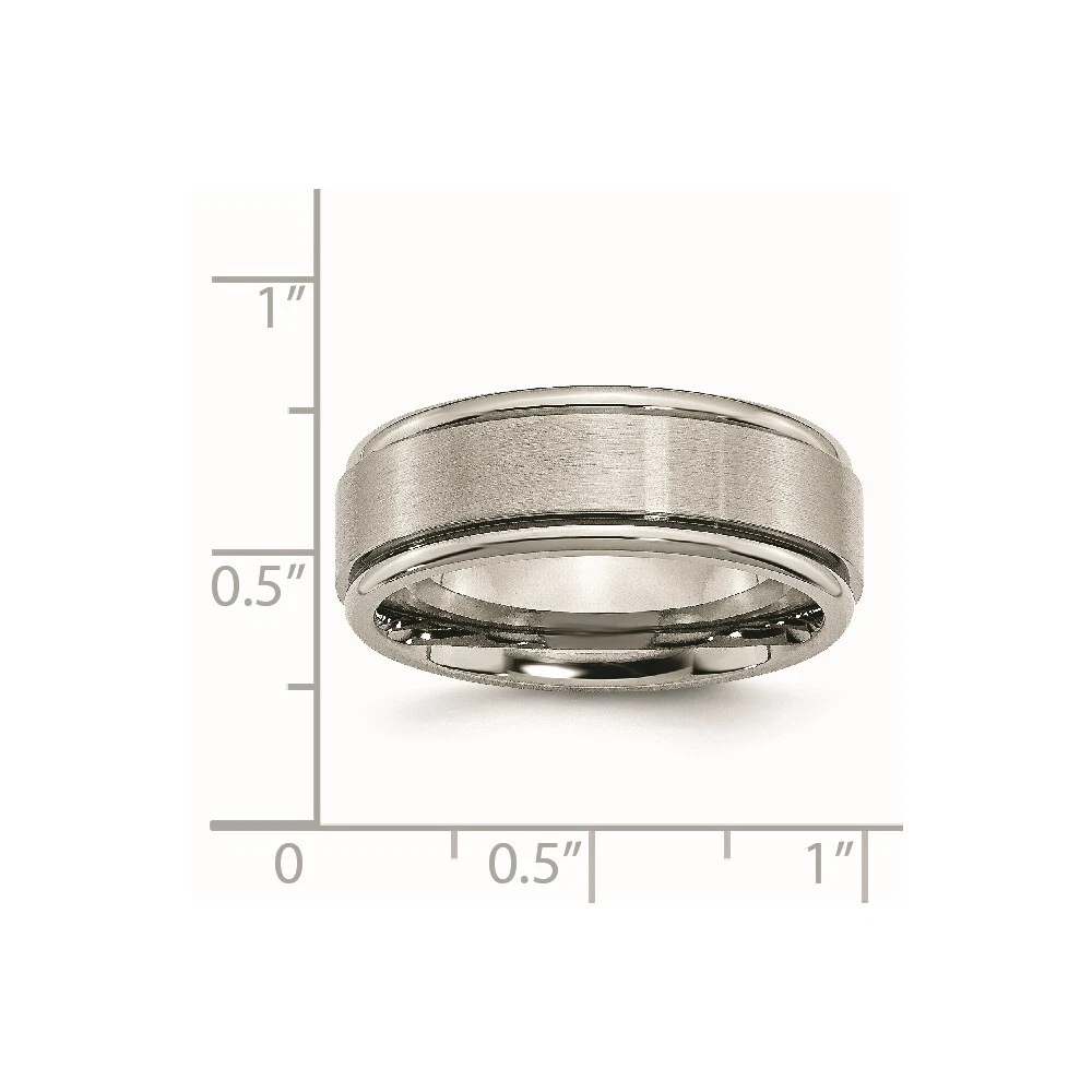Finish:Polished & Brushed|Band Width:8 mm|Material: Primary:Titanium|Ring Fit:Standard|Sizeable:No|Thickness:< 2.5 mm|Item Weight U/M:gm|Width of Item:8 mm|Engravable:Yes|Packaging:Gift Pouch|Product Type:Jewelry|Jewelry Type:Rings|Sold By Unit:Each|Gender:Unisex|Material: Primary - Color:Grey|Ring Type:Wedding Bands|Edge Type:Ridged All weights and measurements are approximate and may vary slightly from the listed information. Welcome to diamond_6720 Payments We accept all Ebay approved payment. Please sent the payment to us within 8 days after the auction has ended, or you will have unpaid case auto open by eBay. Shipping Policy We will ship all items within 1 business days of purchase during the work week (M-F) excluding holidays. If you order on Friday, your order will be shipped the following business day. Tracking will be provided when it becomes available. We will only ship to a PayPal Verified Address. Please make sure your address is current and correct. If the information does not match, your order may be canceled. Buyers are responsible for all customs, duties and taxes for your respective countries. Delivery times for International Shipping will vary. California Buyers Pay 9.0% Tax on all orders. case auto open by eBay. Return Policy & Exchange Returns or Exchange are accepted. Buyer must contact us within 30 days after the item is received. Item must be returned in unworn and resalable condition. We will only issue a refund for the purchase price, excluding any shipping fees. If we are at fault, we will provide a full refund. Buyer is responsible for all return shipping costs. BUYERS FEEDBACK If you have any concerns regarding your purchase, please contact us via eBay Message, we assure you that a satisfactory resolution will be reached. Your feedback is very important to us Do remember to give us 5 star rating(*****) if you are satisfied with our product & service .