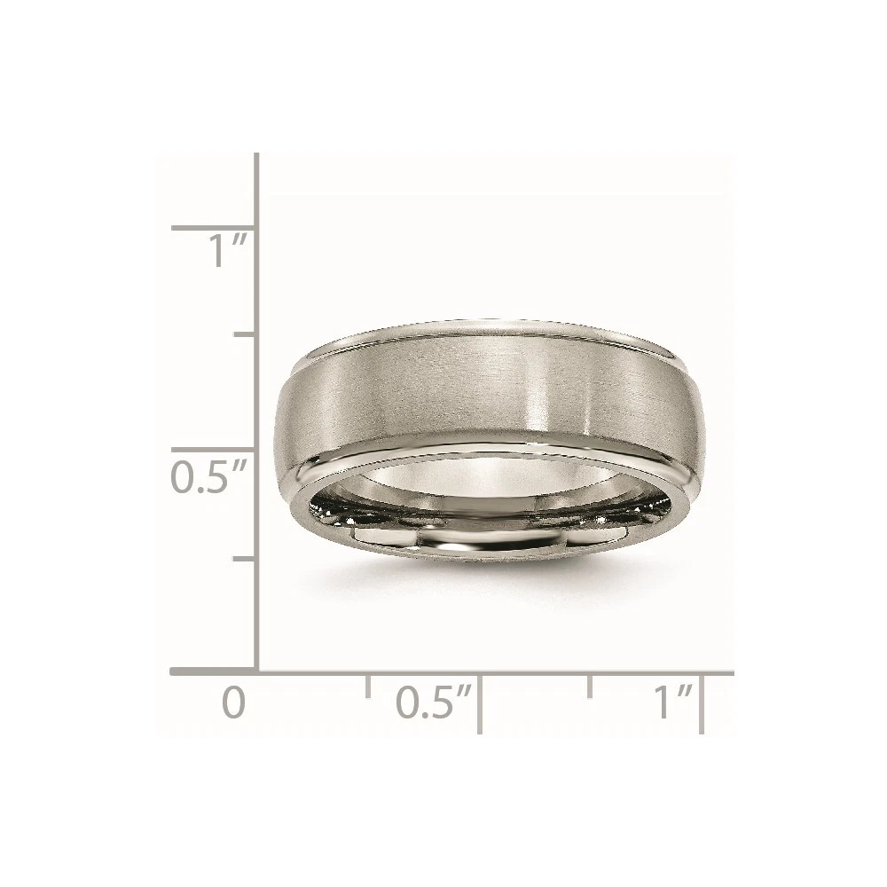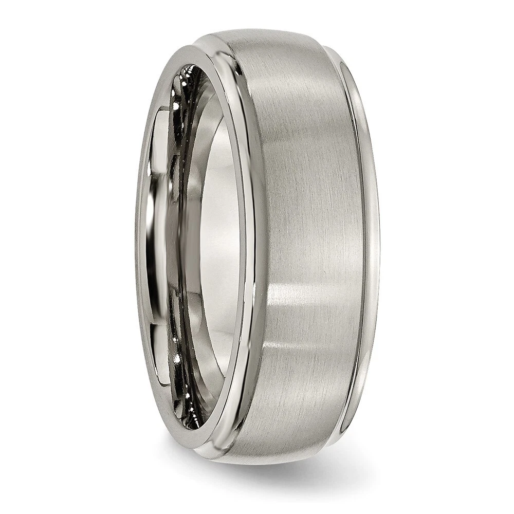 Finish:Brushed|Band Width:8 mm|Feature:Nickel Free|Material: Primary:Titanium|Ring Fit:Comfort|Sizeable:No|Item Weight U/M:gm|Width of Item:8 mm|Engravable:Yes|Packaging:Gift Pouch|Product Type:Jewelry|Jewelry Type:Rings|Sold By Unit:Each|Gender:Unisex|Material: Primary - Color:Grey|Ring Type:Wedding Bands|Edge Type:Ridged|Ring Shape:Domed All weights and measurements are approximate and may vary slightly from the listed information. Welcome to diamond_6720 Payments We accept all Ebay approved payment. Please sent the payment to us within 8 days after the auction has ended, or you will have unpaid case auto open by eBay. Shipping Policy We will ship all items within 1 business days of purchase during the work week (M-F) excluding holidays. If you order on Friday, your order will be shipped the following business day. Tracking will be provided when it becomes available. We will only ship to a PayPal Verified Address. Please make sure your address is current and correct. If the information does not match, your order may be canceled. Buyers are responsible for all customs, duties and taxes for your respective countries. Delivery times for International Shipping will vary. California Buyers Pay 9.0% Tax on all orders. case auto open by eBay. Return Policy & Exchange Returns or Exchange are accepted. Buyer must contact us within 30 days after the item is received. Item must be returned in unworn and resalable condition. We will only issue a refund for the purchase price, excluding any shipping fees. If we are at fault, we will provide a full refund. Buyer is responsible for all return shipping costs. BUYERS FEEDBACK If you have any concerns regarding your purchase, please contact us via eBay Message, we assure you that a satisfactory resolution will be reached. Your feedback is very important to us Do remember to give us 5 star rating(*****) if you are satisfied with our product & service .
