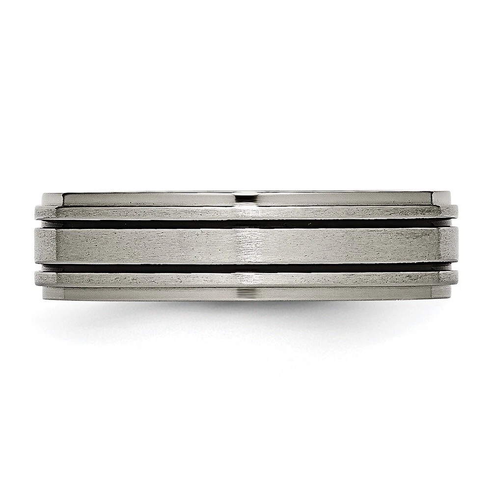 Finish:Polished & Brushed|Material: Accents:Enamel|Material: Accent Color 1:Black|Band Width:6 mm|Material: Primary:Titanium|Ring Fit:Standard|Sizeable:No|Thickness:< 2 mm|Item Weight U/M:gm|Width of Item:6 mm|Engravable:Yes|Packaging:Gift Pouch|Product Type:Jewelry|Jewelry Type:Rings|Sold By Unit:Each|Gender:Unisex|Texture:Satin|Material: Primary - Color:Grey|Ring Type:Wedding Bands|Edge Type:Flat|Ring Shape:Flat All weights and measurements are approximate and may vary slightly from the listed information. Welcome to diamond_6720 Payments We accept all Ebay approved payment. Please sent the payment to us within 8 days after the auction has ended, or you will have unpaid case auto open by eBay. Shipping Policy We will ship all items within 1 business days of purchase during the work week (M-F) excluding holidays. If you order on Friday, your order will be shipped the following business day. Tracking will be provided when it becomes available. We will only ship to a PayPal Verified Address. Please make sure your address is current and correct. If the information does not match, your order may be canceled. Buyers are responsible for all customs, duties and taxes for your respective countries. Delivery times for International Shipping will vary. California Buyers Pay 9.0% Tax on all orders. case auto open by eBay. Return Policy & Exchange Returns or Exchange are accepted. Buyer must contact us within 30 days after the item is received. Item must be returned in unworn and resalable condition. We will only issue a refund for the purchase price, excluding any shipping fees. If we are at fault, we will provide a full refund. Buyer is responsible for all return shipping costs. BUYERS FEEDBACK If you have any concerns regarding your purchase, please contact us via eBay Message, we assure you that a satisfactory resolution will be reached. Your feedback is very important to us Do remember to give us 5 star rating(*****) if you are satisfied with our product & service .