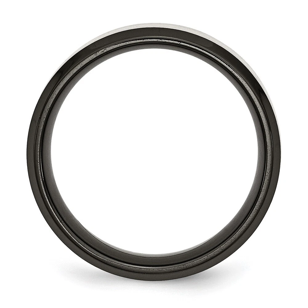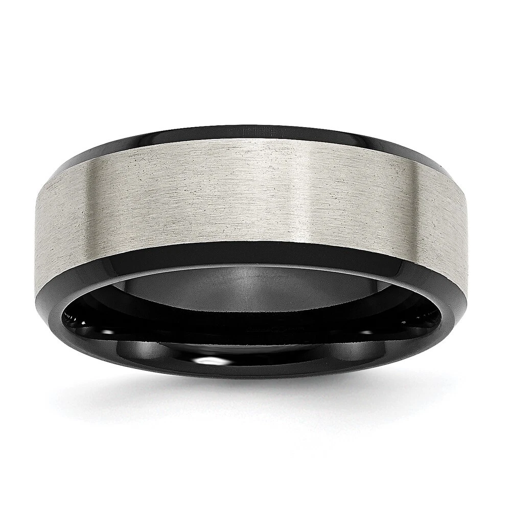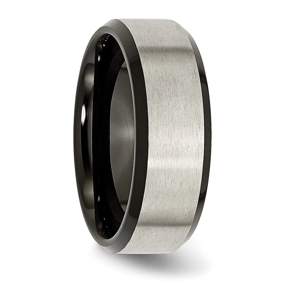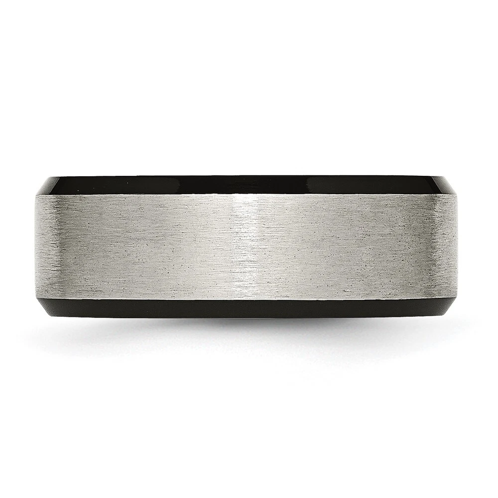 Titanium Brushed Center Black IP-plated 8mm Beveled Edge Band Ring Size 9