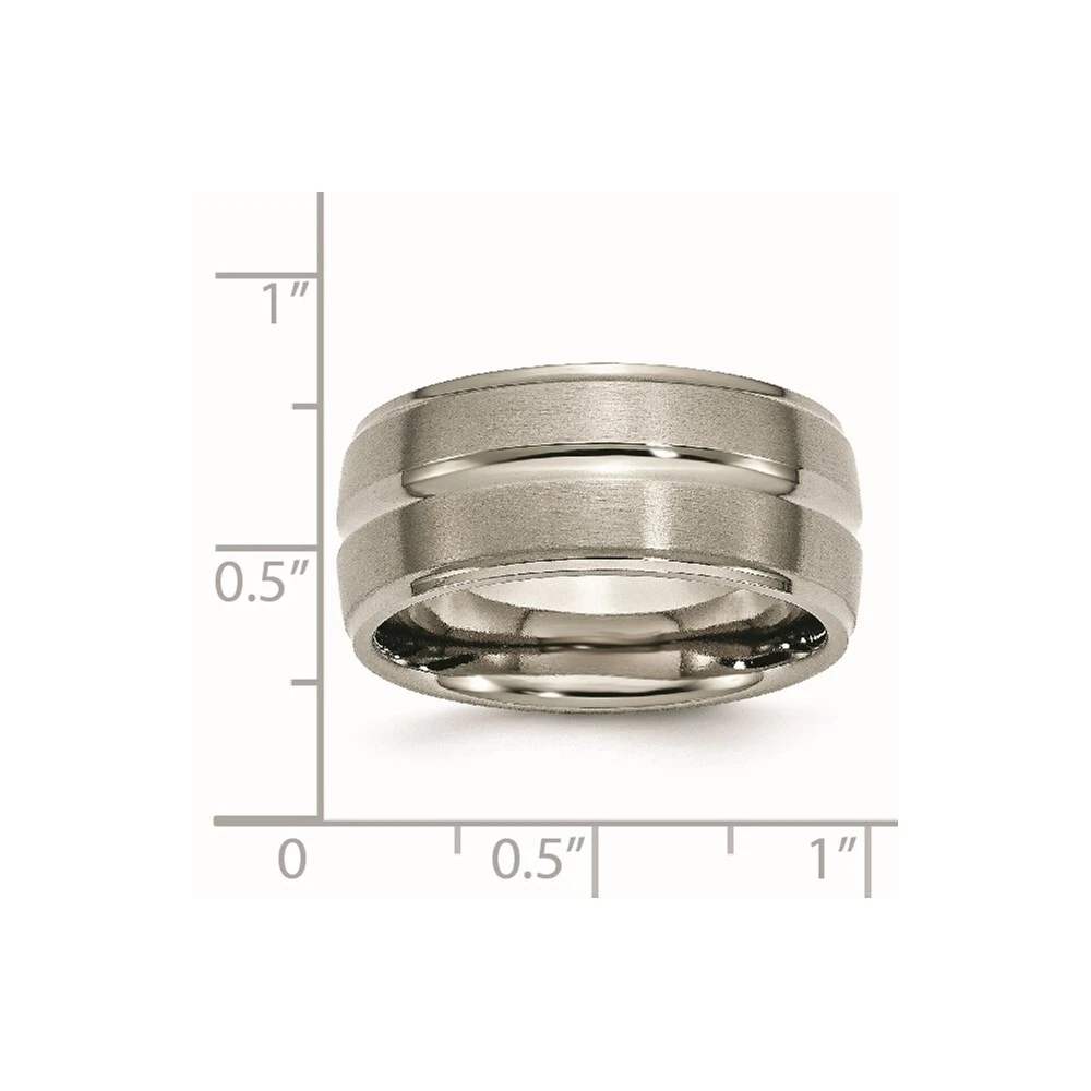 Finish:Polished & Brushed|Band Width:10 mm|Material: Primary:Titanium|Ring Fit:Standard|Sizeable:No|Thickness:< 3 mm|Item Weight U/M:gm|Width of Item:10 mm|Engravable:Yes|Packaging:Gift Pouch|Product Type:Jewelry|Jewelry Type:Rings|Sold By Unit:Each|Gender:Unisex|Texture:Grooved|Material: Primary - Color:Grey|Ring Type:Wedding Bands|Edge Type:Ridged All weights and measurements are approximate and may vary slightly from the listed information. Welcome to diamond_6720 Payments We accept all Ebay approved payment. Please sent the payment to us within 8 days after the auction has ended, or you will have unpaid case auto open by eBay. Shipping Policy We will ship all items within 1 business days of purchase during the work week (M-F) excluding holidays. If you order on Friday, your order will be shipped the following business day. Tracking will be provided when it becomes available. We will only ship to a PayPal Verified Address. Please make sure your address is current and correct. If the information does not match, your order may be canceled. Buyers are responsible for all customs, duties and taxes for your respective countries. Delivery times for International Shipping will vary. California Buyers Pay 9.0% Tax on all orders. case auto open by eBay. Return Policy & Exchange Returns or Exchange are accepted. Buyer must contact us within 30 days after the item is received. Item must be returned in unworn and resalable condition. We will only issue a refund for the purchase price, excluding any shipping fees. If we are at fault, we will provide a full refund. Buyer is responsible for all return shipping costs. BUYERS FEEDBACK If you have any concerns regarding your purchase, please contact us via eBay Message, we assure you that a satisfactory resolution will be reached. Your feedback is very important to us Do remember to give us 5 star rating(*****) if you are satisfied with our product & service .