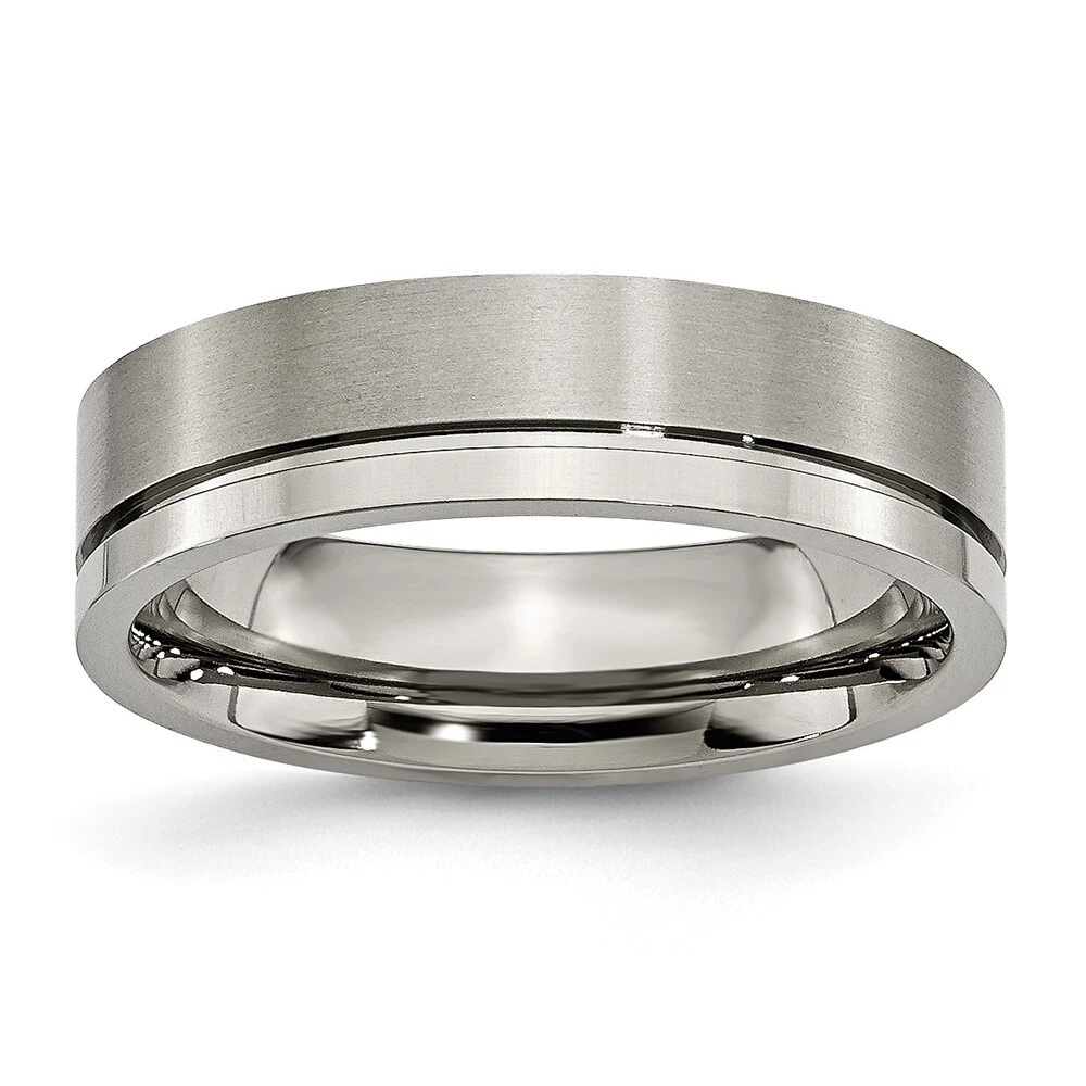 Finish:Polished & Brushed|Band Width:6 mm|Material: Primary:Titanium|Ring Fit:Standard|Sizeable:No|Item Weight U/M:gm|Width of Item:6 mm|Engravable:Yes|Packaging:Gift Pouch|Product Type:Jewelry|Jewelry Type:Rings|Sold By Unit:Each|Gender:Unisex|Texture:Grooved|Material: Primary - Color:Grey|Ring Type:Wedding Bands|Edge Type:Flat|Ring Shape:Flat All weights and measurements are approximate and may vary slightly from the listed information. Welcome to diamond_6720 Payments We accept all Ebay approved payment. Please sent the payment to us within 8 days after the auction has ended, or you will have unpaid case auto open by eBay. Shipping Policy We will ship all items within 1 business days of purchase during the work week (M-F) excluding holidays. If you order on Friday, your order will be shipped the following business day. Tracking will be provided when it becomes available. We will only ship to a PayPal Verified Address. Please make sure your address is current and correct. If the information does not match, your order may be canceled. Buyers are responsible for all customs, duties and taxes for your respective countries. Delivery times for International Shipping will vary. California Buyers Pay 9.0% Tax on all orders. case auto open by eBay. Return Policy & Exchange Returns or Exchange are accepted. Buyer must contact us within 30 days after the item is received. Item must be returned in unworn and resalable condition. We will only issue a refund for the purchase price, excluding any shipping fees. If we are at fault, we will provide a full refund. Buyer is responsible for all return shipping costs. BUYERS FEEDBACK If you have any concerns regarding your purchase, please contact us via eBay Message, we assure you that a satisfactory resolution will be reached. Your feedback is very important to us Do remember to give us 5 star rating(*****) if you are satisfied with our product & service .