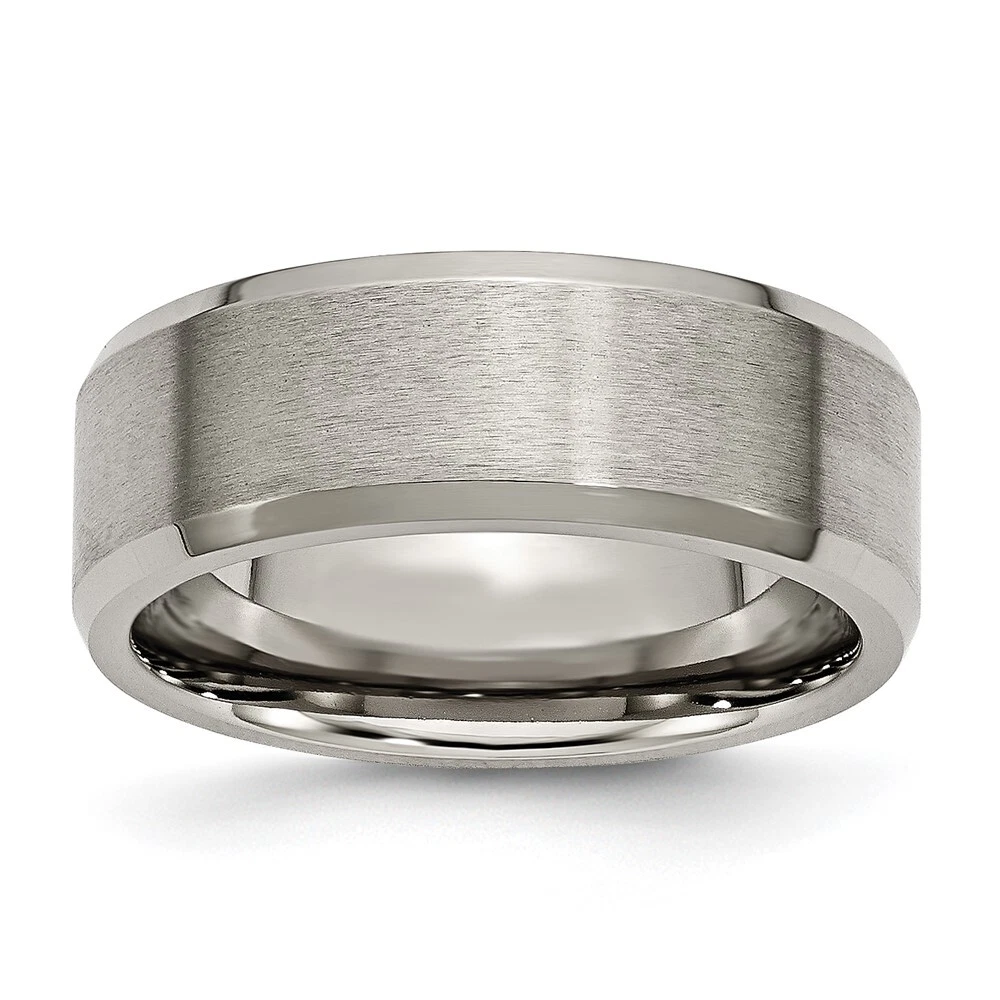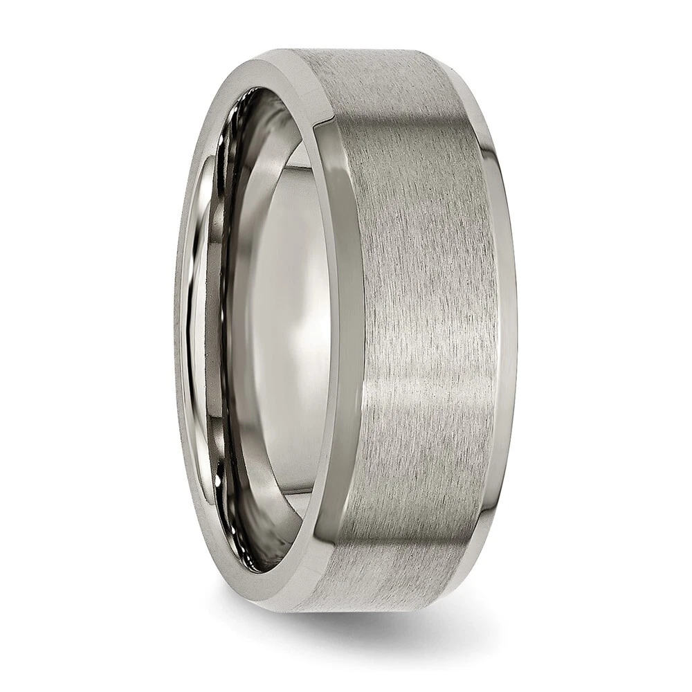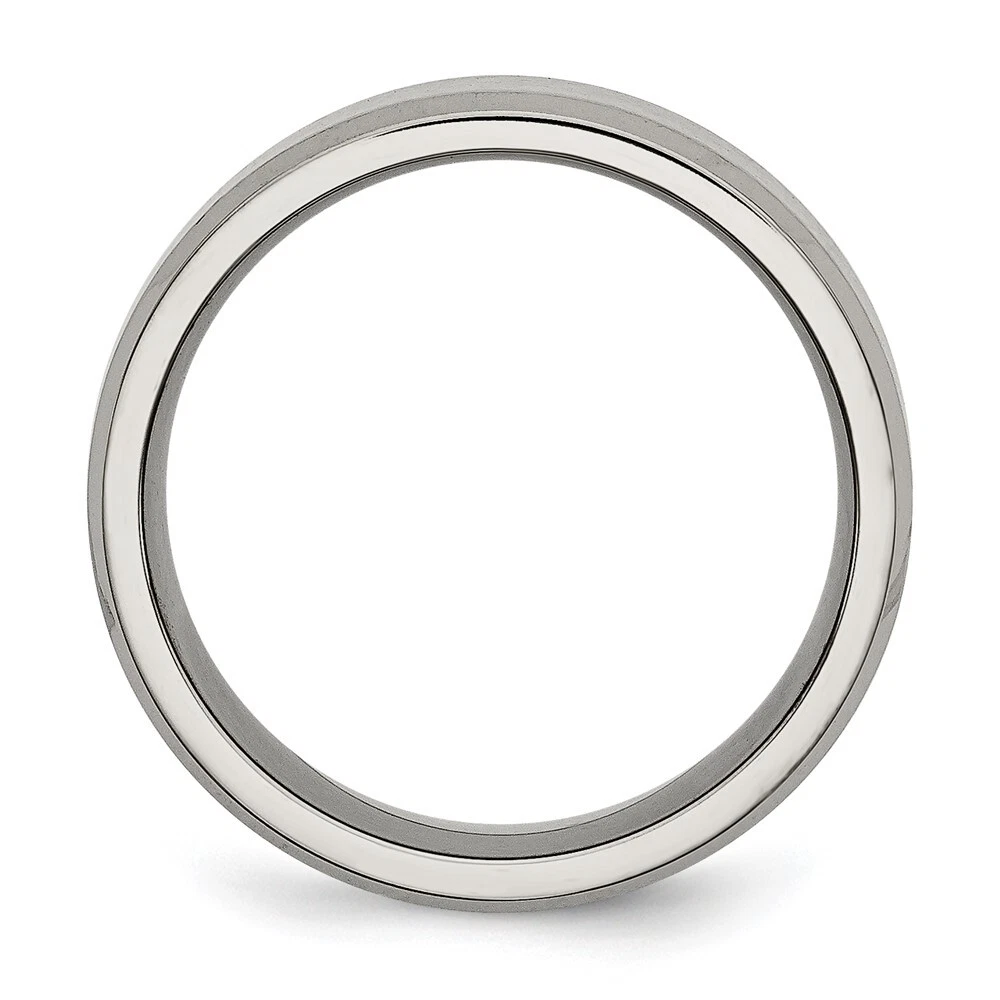 Titanium Brushed and Polished 8mm Beveled Edge Band Ring Size 12