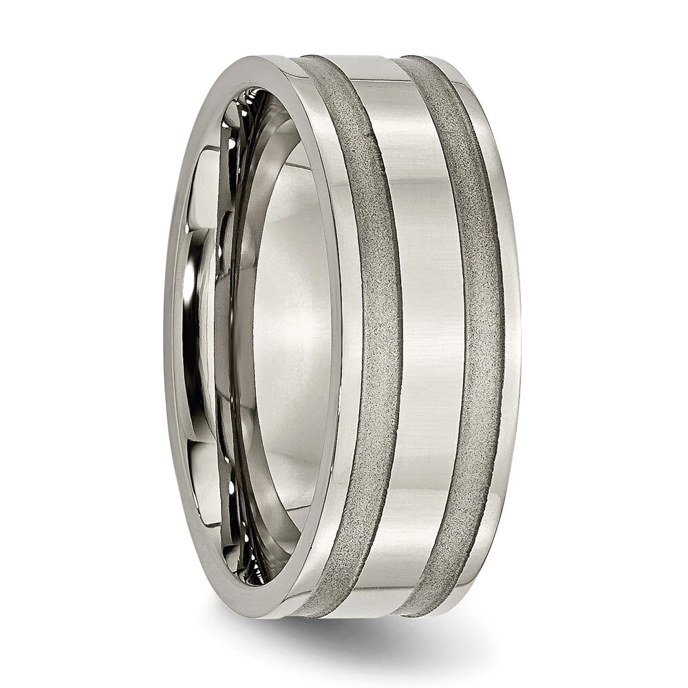 Titanium Brushed and Polished 8mm Grooved Band Ring Size 10 for Men 4.63gm