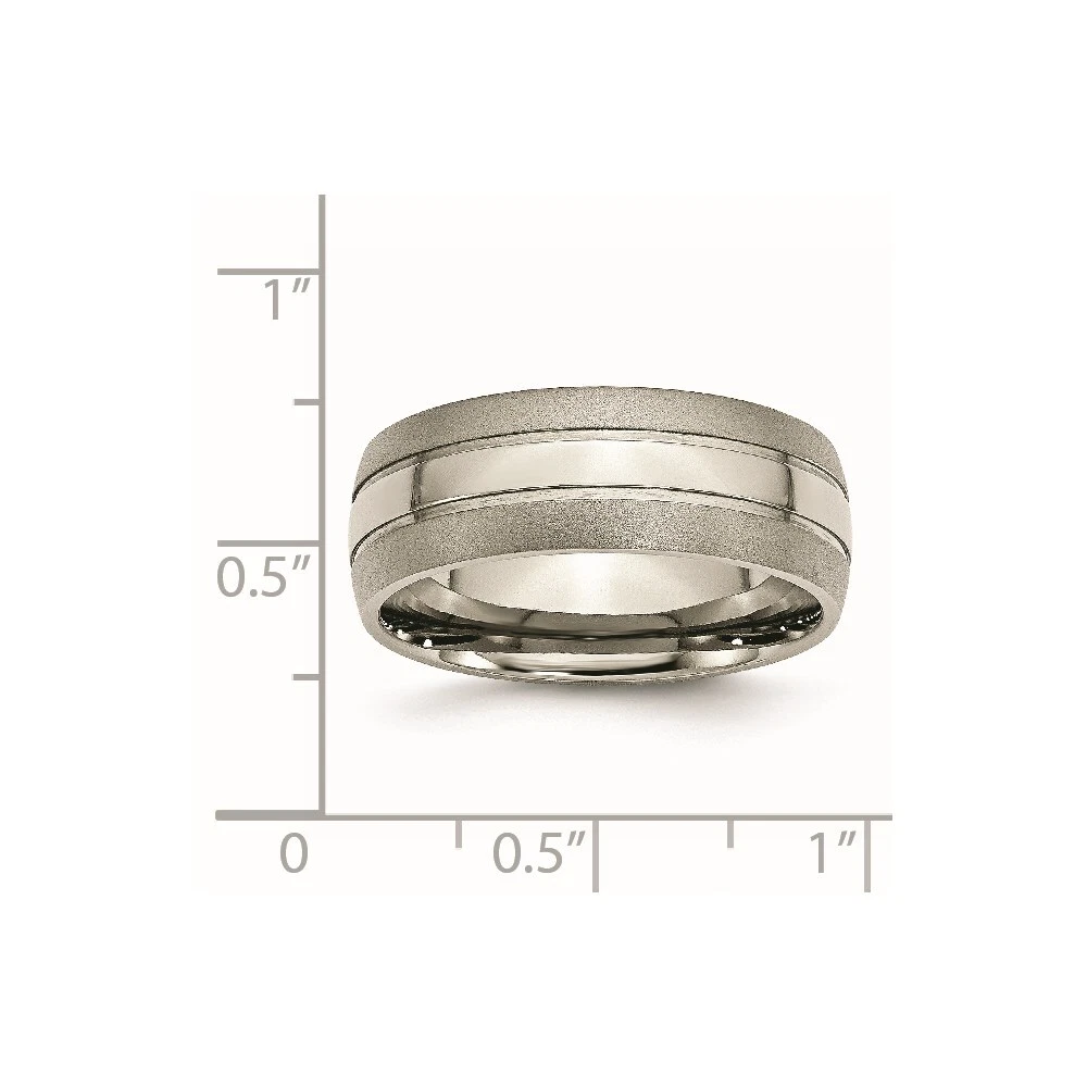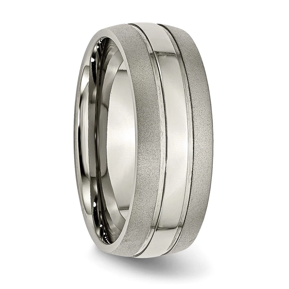 Finish:Polished & Brushed|Band Width:8 mm|Material: Primary:Titanium|Ring Fit:Standard|Sizeable:No|Thickness:< 2 mm|Item Weight U/M:gm|Width of Item:8 mm|Engravable:Yes|Packaging:Gift Pouch|Product Type:Jewelry|Jewelry Type:Rings|Sold By Unit:Each|Gender:Unisex|Texture:Grooved|Material: Primary - Color:Grey|Ring Type:Wedding Bands|Edge Type:Rounded|Ring Shape:Half Round All weights and measurements are approximate and may vary slightly from the listed information. Welcome to diamond_6720 Payments We accept all Ebay approved payment. Please sent the payment to us within 8 days after the auction has ended, or you will have unpaid case auto open by eBay. Shipping Policy We will ship all items within 1 business days of purchase during the work week (M-F) excluding holidays. If you order on Friday, your order will be shipped the following business day. Tracking will be provided when it becomes available. We will only ship to a PayPal Verified Address. Please make sure your address is current and correct. If the information does not match, your order may be canceled. Buyers are responsible for all customs, duties and taxes for your respective countries. Delivery times for International Shipping will vary. California Buyers Pay 9.0% Tax on all orders. case auto open by eBay. Return Policy & Exchange Returns or Exchange are accepted. Buyer must contact us within 30 days after the item is received. Item must be returned in unworn and resalable condition. We will only issue a refund for the purchase price, excluding any shipping fees. If we are at fault, we will provide a full refund. Buyer is responsible for all return shipping costs. BUYERS FEEDBACK If you have any concerns regarding your purchase, please contact us via eBay Message, we assure you that a satisfactory resolution will be reached. Your feedback is very important to us Do remember to give us 5 star rating(*****) if you are satisfied with our product & service .