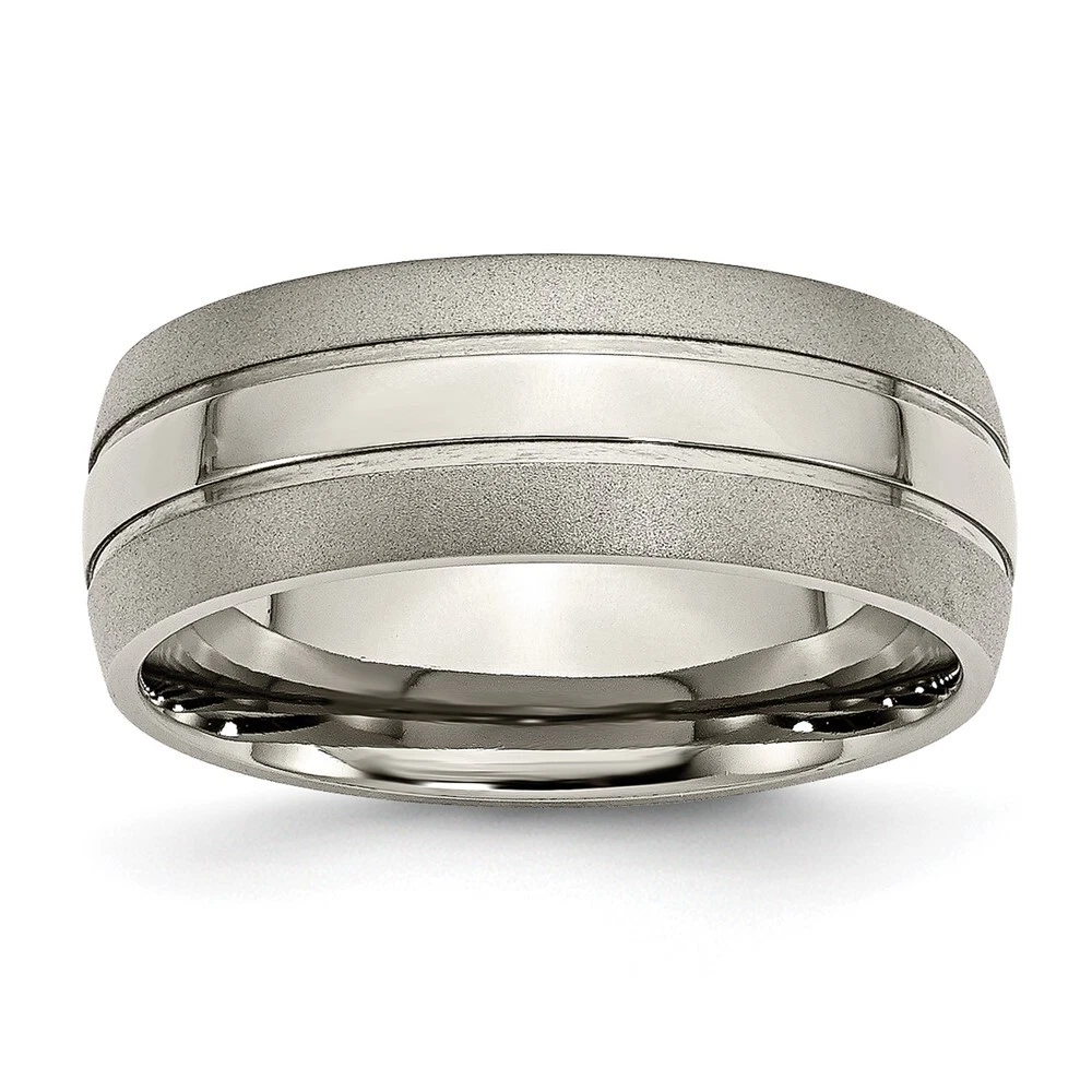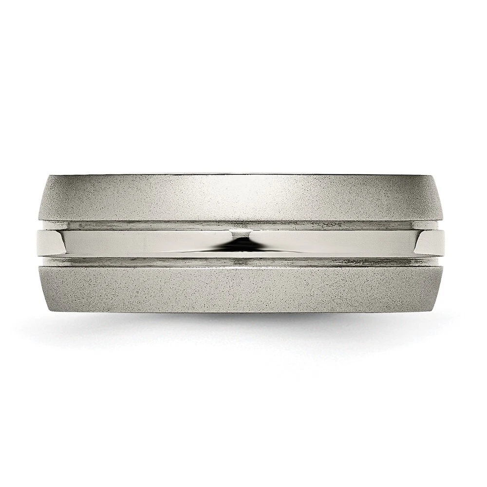 Finish:Polished & Brushed|Band Width:8 mm|Material: Primary:Titanium|Ring Fit:Standard|Sizeable:No|Thickness:< 2 mm|Item Weight U/M:gm|Width of Item:8 mm|Engravable:Yes|Packaging:Gift Pouch|Product Type:Jewelry|Jewelry Type:Rings|Sold By Unit:Each|Gender:Unisex|Texture:Grooved|Material: Primary - Color:Grey|Ring Type:Wedding Bands|Edge Type:Rounded|Ring Shape:Half Round All weights and measurements are approximate and may vary slightly from the listed information. Welcome to diamond_6720 Payments We accept all Ebay approved payment. Please sent the payment to us within 8 days after the auction has ended, or you will have unpaid case auto open by eBay. Shipping Policy We will ship all items within 1 business days of purchase during the work week (M-F) excluding holidays. If you order on Friday, your order will be shipped the following business day. Tracking will be provided when it becomes available. We will only ship to a PayPal Verified Address. Please make sure your address is current and correct. If the information does not match, your order may be canceled. Buyers are responsible for all customs, duties and taxes for your respective countries. Delivery times for International Shipping will vary. California Buyers Pay 9.0% Tax on all orders. case auto open by eBay. Return Policy & Exchange Returns or Exchange are accepted. Buyer must contact us within 30 days after the item is received. Item must be returned in unworn and resalable condition. We will only issue a refund for the purchase price, excluding any shipping fees. If we are at fault, we will provide a full refund. Buyer is responsible for all return shipping costs. BUYERS FEEDBACK If you have any concerns regarding your purchase, please contact us via eBay Message, we assure you that a satisfactory resolution will be reached. Your feedback is very important to us Do remember to give us 5 star rating(*****) if you are satisfied with our product & service .