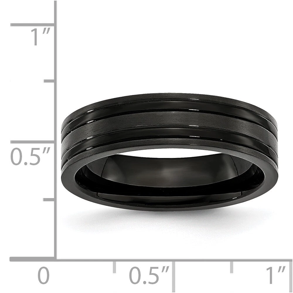 Finish:Polished & Brushed|Plating:IP-Plated|Band Width:6 mm|Material: Primary:Titanium|Ring Fit:Comfort|Sizeable:No|Thickness:< 2 mm|Item Weight U/M:gm|Width of Item:6 mm|Engravable:Yes|Packaging:Gift Pouch|Product Type:Jewelry|Jewelry Type:Rings|Sold By Unit:Each|Gender:Unisex|Texture:Grooved|Material: Primary - Color:Grey|Ring Type:Wedding Bands|Edge Type:Flat|Plating Color:Black|Ring Shape:Flat All weights and measurements are approximate and may vary slightly from the listed information. Welcome to diamond_6720 Payments We accept all Ebay approved payment. Please sent the payment to us within 8 days after the auction has ended, or you will have unpaid case auto open by eBay. Shipping Policy We will ship all items within 1 business days of purchase during the work week (M-F) excluding holidays. If you order on Friday, your order will be shipped the following business day. Tracking will be provided when it becomes available. We will only ship to a PayPal Verified Address. Please make sure your address is current and correct. If the information does not match, your order may be canceled. Buyers are responsible for all customs, duties and taxes for your respective countries. Delivery times for International Shipping will vary. California Buyers Pay 9.0% Tax on all orders. case auto open by eBay. Return Policy & Exchange Returns or Exchange are accepted. Buyer must contact us within 30 days after the item is received. Item must be returned in unworn and resalable condition. We will only issue a refund for the purchase price, excluding any shipping fees. If we are at fault, we will provide a full refund. Buyer is responsible for all return shipping costs. BUYERS FEEDBACK If you have any concerns regarding your purchase, please contact us via eBay Message, we assure you that a satisfactory resolution will be reached. Your feedback is very important to us Do remember to give us 5 star rating(*****) if you are satisfied with our product & service .