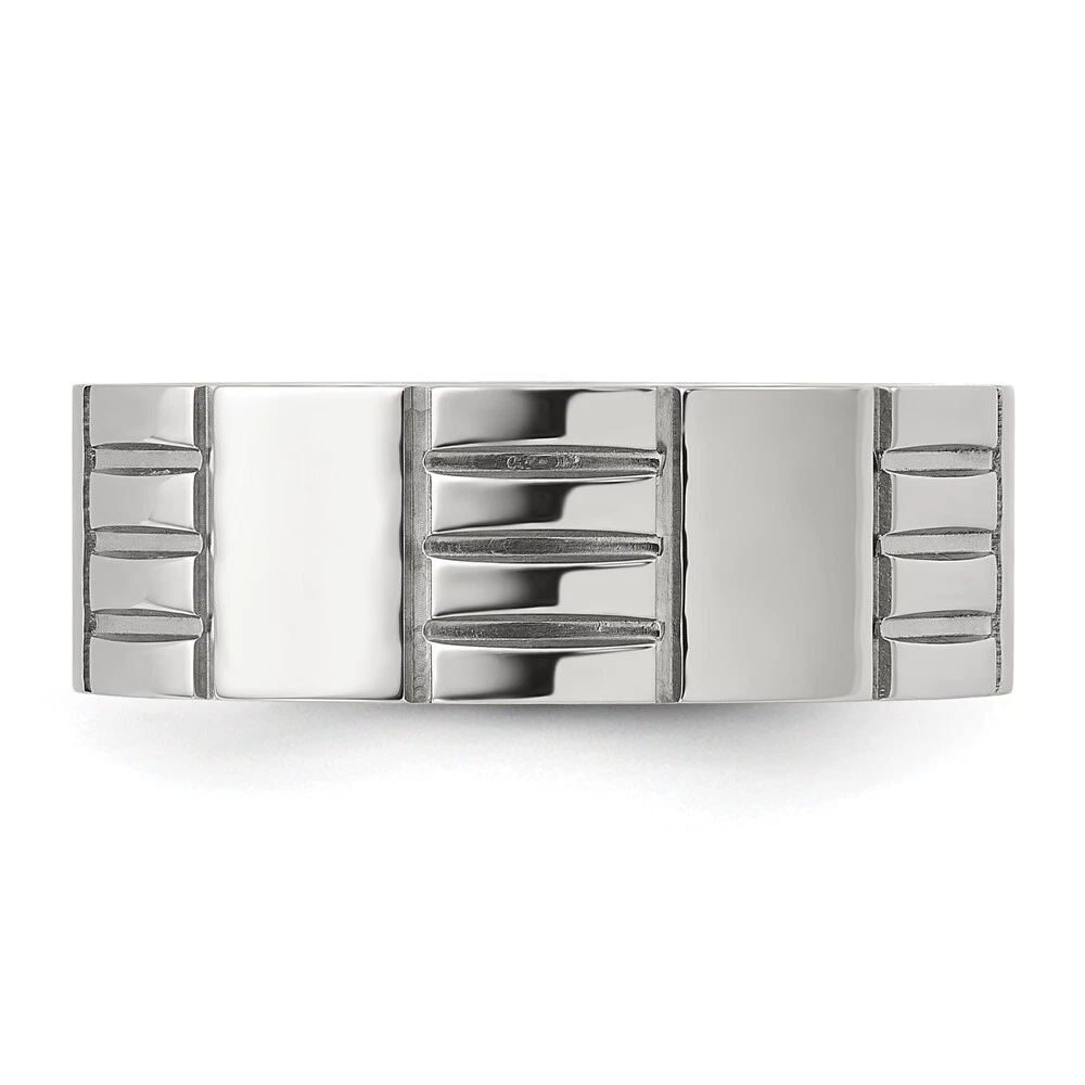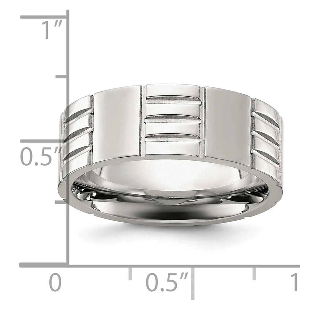 Titanium Brushed and Polished Grooved 8mm Band Ring Size 11 for Men 4.77gm