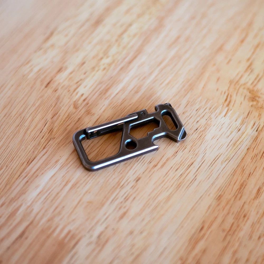 The Titanium Keychain Carabiner EDC is a versatile multi-tool designed for outdoor enthusiasts. Made of durable titanium, this keychain includes four tools: a wrench, bottle opener, Phillips screwdriver, and small screwdriver. The convenient carabiner design allows for easy carrying and access, making it a practical and reliable tool for camping, hiking, and other outdoor activities. With the trusted EDC brand behind it, this keychain carabiner is a must-have for those who value functionality and durability in their tools.
