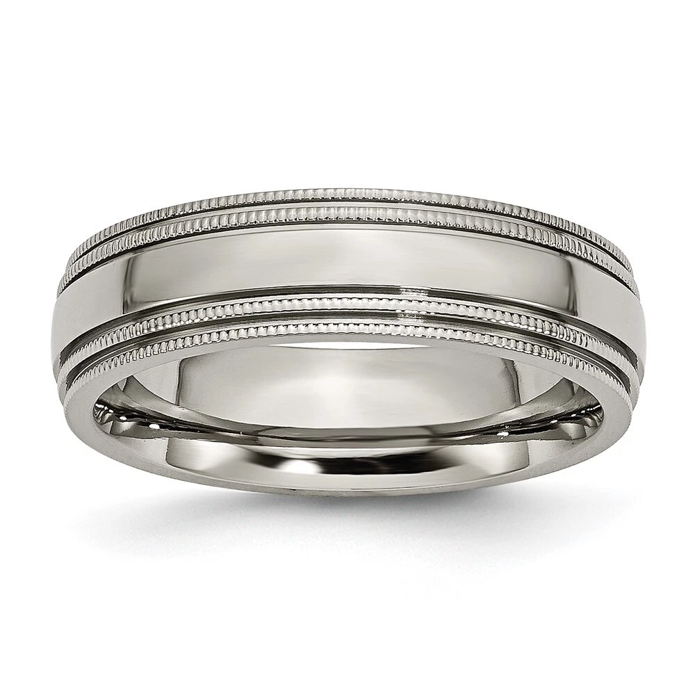 Finish:Polished|Band Width:6 mm|Material: Primary:Titanium|Ring Fit:Standard|Sizeable:No|Thickness:< 2 mm|Item Weight U/M:gm|Width of Item:6 mm|Engravable:Yes|Packaging:Gift Pouch|Product Type:Jewelry|Jewelry Type:Rings|Sold By Unit:Each|Gender:Unisex|Texture:Grooved|Material: Primary - Color:Grey|Ring Type:Wedding Bands|Edge Type:Beaded|Ring Shape:Half Round All weights and measurements are approximate and may vary slightly from the listed information. Welcome to diamond_6720 Payments We accept all Ebay approved payment. Please sent the payment to us within 8 days after the auction has ended, or you will have unpaid case auto open by eBay. Shipping Policy We will ship all items within 1 business days of purchase during the work week (M-F) excluding holidays. If you order on Friday, your order will be shipped the following business day. Tracking will be provided when it becomes available. We will only ship to a PayPal Verified Address. Please make sure your address is current and correct. If the information does not match, your order may be canceled. Buyers are responsible for all customs, duties and taxes for your respective countries. Delivery times for International Shipping will vary. California Buyers Pay 9.0% Tax on all orders. case auto open by eBay. Return Policy & Exchange Returns or Exchange are accepted. Buyer must contact us within 30 days after the item is received. Item must be returned in unworn and resalable condition. We will only issue a refund for the purchase price, excluding any shipping fees. If we are at fault, we will provide a full refund. Buyer is responsible for all return shipping costs. BUYERS FEEDBACK If you have any concerns regarding your purchase, please contact us via eBay Message, we assure you that a satisfactory resolution will be reached. Your feedback is very important to us Do remember to give us 5 star rating(*****) if you are satisfied with our product & service .