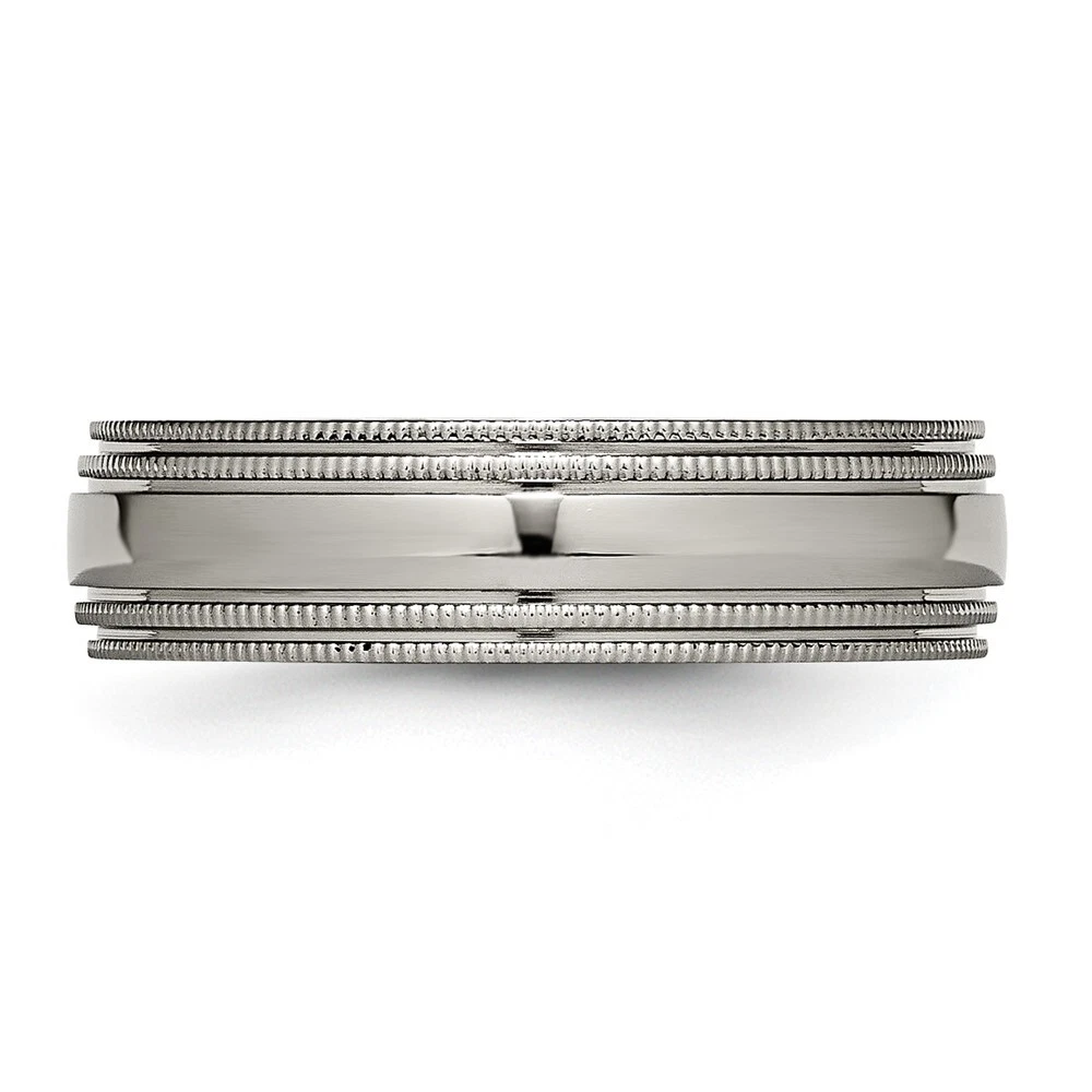 Finish:Polished|Band Width:6 mm|Material: Primary:Titanium|Ring Fit:Standard|Sizeable:No|Thickness:< 2 mm|Item Weight U/M:gm|Width of Item:6 mm|Engravable:Yes|Packaging:Gift Pouch|Product Type:Jewelry|Jewelry Type:Rings|Sold By Unit:Each|Gender:Unisex|Texture:Grooved|Material: Primary - Color:Grey|Ring Type:Wedding Bands|Edge Type:Beaded|Ring Shape:Half Round All weights and measurements are approximate and may vary slightly from the listed information. Welcome to diamond_6720 Payments We accept all Ebay approved payment. Please sent the payment to us within 8 days after the auction has ended, or you will have unpaid case auto open by eBay. Shipping Policy We will ship all items within 1 business days of purchase during the work week (M-F) excluding holidays. If you order on Friday, your order will be shipped the following business day. Tracking will be provided when it becomes available. We will only ship to a PayPal Verified Address. Please make sure your address is current and correct. If the information does not match, your order may be canceled. Buyers are responsible for all customs, duties and taxes for your respective countries. Delivery times for International Shipping will vary. California Buyers Pay 9.0% Tax on all orders. case auto open by eBay. Return Policy & Exchange Returns or Exchange are accepted. Buyer must contact us within 30 days after the item is received. Item must be returned in unworn and resalable condition. We will only issue a refund for the purchase price, excluding any shipping fees. If we are at fault, we will provide a full refund. Buyer is responsible for all return shipping costs. BUYERS FEEDBACK If you have any concerns regarding your purchase, please contact us via eBay Message, we assure you that a satisfactory resolution will be reached. Your feedback is very important to us Do remember to give us 5 star rating(*****) if you are satisfied with our product & service .