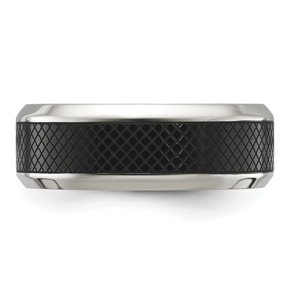Titanium Polished Black IP-plated Textured Center 8mm Band Ring Size 12