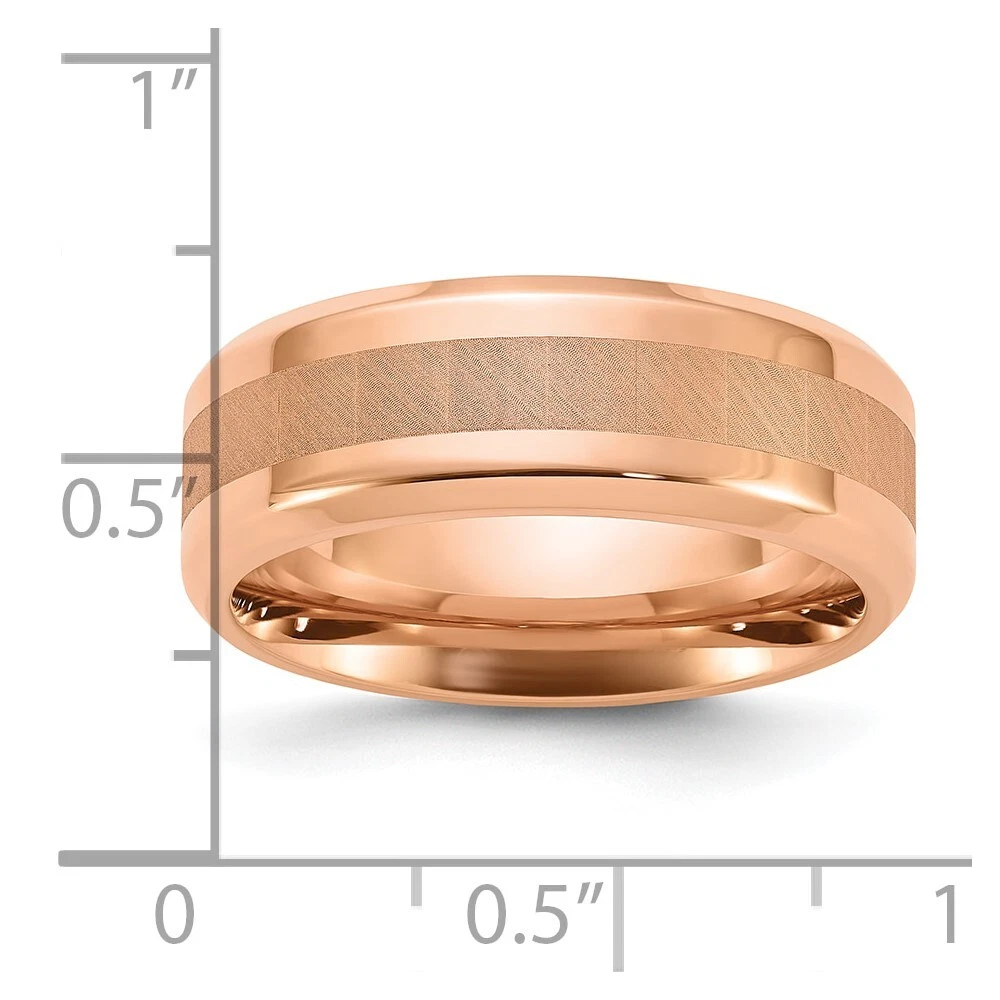 Titanium Polished Rose IP-plated Brushed Center 8mm Band Ring Size 8