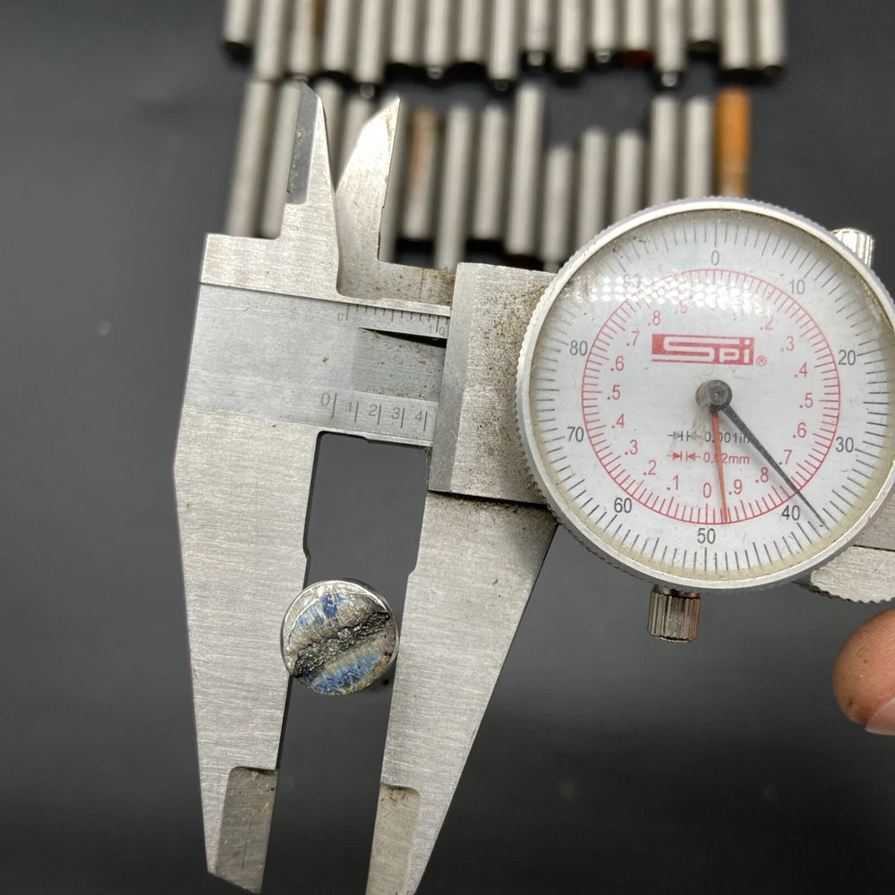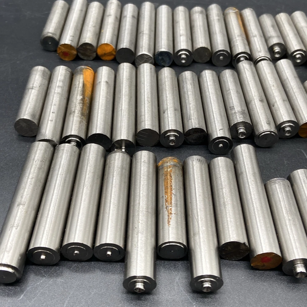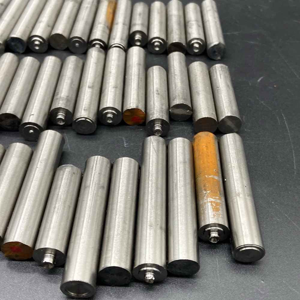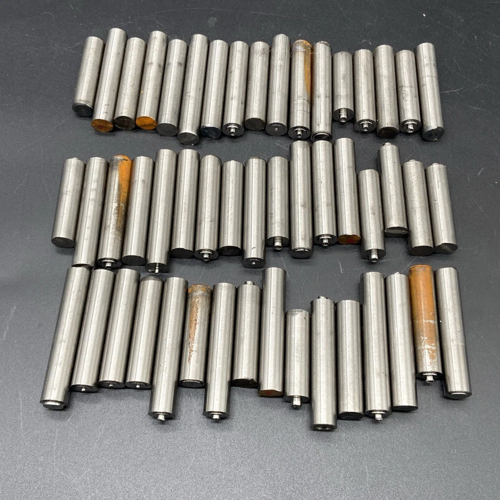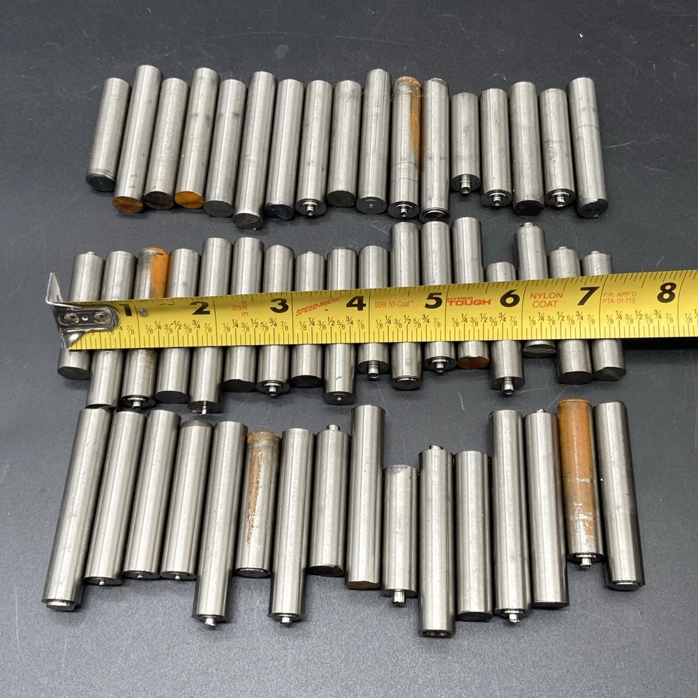 Grade 5 titanium drops. 7/16” diameter. Vary in length from 1-1/4” to 2-1/4”. Photos are of exact pieces you will receive. 50 pieces total