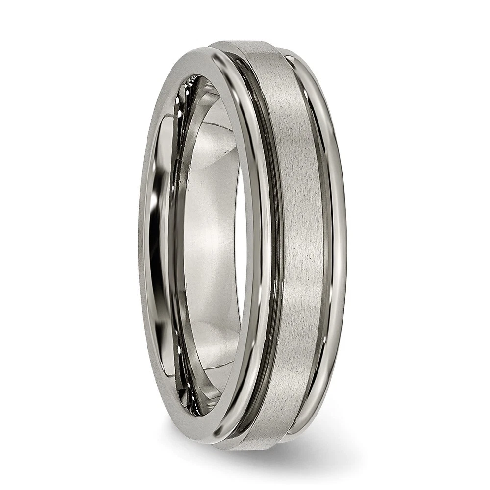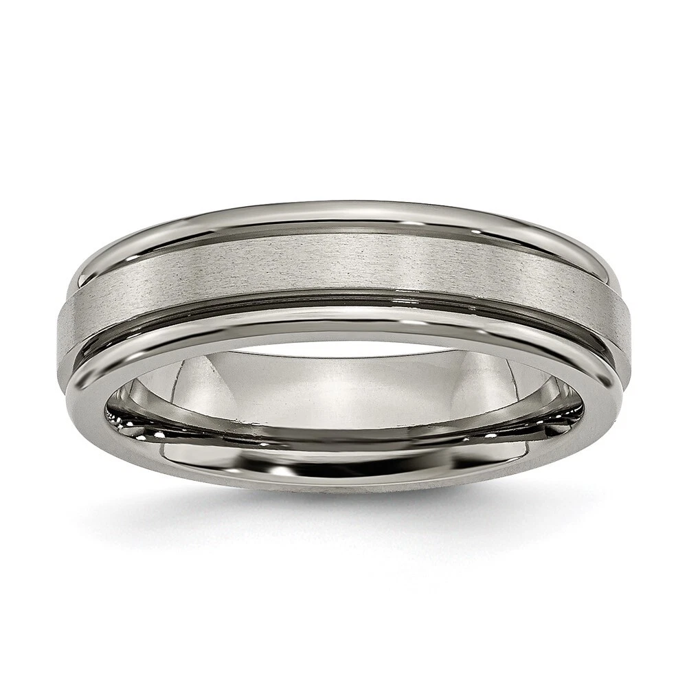 Finish:Polished & Brushed|Band Width:6 mm|Feature:Nickel Free|Material: Primary:Titanium|Ring Fit:Comfort|Sizeable:No|Thickness:< 2.5 mm|Item Weight U/M:gm|Width of Item:6 mm|Engravable:Yes|Packaging:Gift Pouch|Product Type:Jewelry|Jewelry Type:Rings|Sold By Unit:Each|Gender:Unisex|Texture:Grooved|Material: Primary - Color:Grey|Ring Type:Wedding Bands|Edge Type:Grooved All weights and measurements are approximate and may vary slightly from the listed information. Welcome to diamond_6720 Payments We accept all Ebay approved payment. Please sent the payment to us within 8 days after the auction has ended, or you will have unpaid case auto open by eBay. Shipping Policy We will ship all items within 1 business days of purchase during the work week (M-F) excluding holidays. If you order on Friday, your order will be shipped the following business day. Tracking will be provided when it becomes available. We will only ship to a PayPal Verified Address. Please make sure your address is current and correct. If the information does not match, your order may be canceled. Buyers are responsible for all customs, duties and taxes for your respective countries. Delivery times for International Shipping will vary. California Buyers Pay 9.0% Tax on all orders. case auto open by eBay. Return Policy & Exchange Returns or Exchange are accepted. Buyer must contact us within 30 days after the item is received. Item must be returned in unworn and resalable condition. We will only issue a refund for the purchase price, excluding any shipping fees. If we are at fault, we will provide a full refund. Buyer is responsible for all return shipping costs. BUYERS FEEDBACK If you have any concerns regarding your purchase, please contact us via eBay Message, we assure you that a satisfactory resolution will be reached. Your feedback is very important to us Do remember to give us 5 star rating(*****) if you are satisfied with our product & service .
