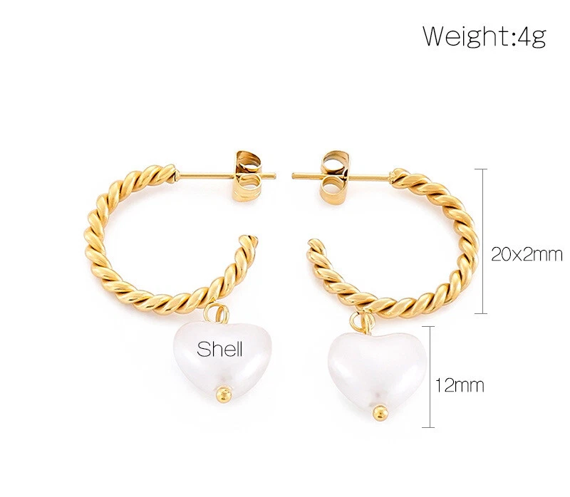 Titanium steel twist C ring earrings heart-shaped pearl earrings for women