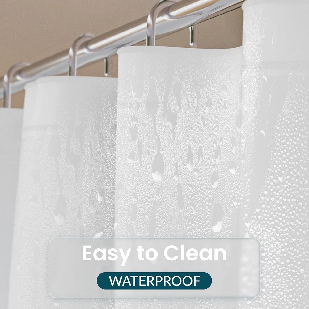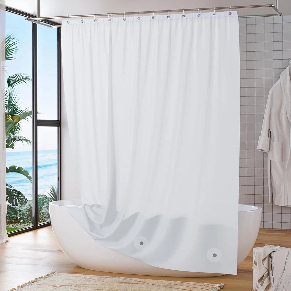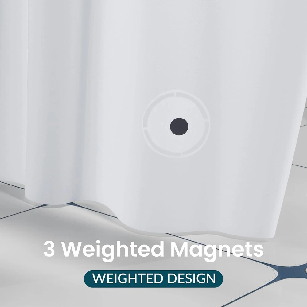 Titanker White Shower Curtain Liner 72 x 84 72"W x 84"L (Pack of 1), Product Details Brand: Titanker Color: White Material: Ethylene Vinyl Acetate Product Dimensions: 84"L x 72"W Opacity: Light-filtering Special Feature: Lined, Waterproof Room Type: Bathroom Style: Modern Pattern: Solid Theme: Solid Curtain Form: Shower Curtain Liner Top Style: Grommet Size: 72"W x 84"L (Pack of 1) Included Components: Grommet Recommended Uses For Product: Indoor Specific Uses For Product: Shower Weave Type: Machine made Seasons: All Season Hanging Method: Grommet Item Weight: 9.76 ounces Number of Items: 1 Product Care Instructions: Wipe Clean Lining Description: Lined Package Weight: 0.32 Kilograms Water Resistance Level: Waterproof Fabric Type: Peva Unit Count: 1.0 Count Model Name: 1 Manufacturer: Titanker Item Weight: 9.8 ounces Country of Origin: China Lightweight and waterproof: The shower curtain liner is lightweight, which is easy to wipe. The smooth shower liner is waterproof and drained quickly, keeping your bathroom dry and clean. Sturdy and rustproof: The white shower curtain liner can be hung and taken out easily because of 12 metal grommet holes. The plastic shower curtain liner can keep the liner from tearing. Compatible with many standard size shower rods. Magnets design: With 3 magnets at the bottom, the inside shower curtain liner will prevent water from seeping out into the rest of your bathroom and keep the bathroom curtain liner in place. Eco-friendly material: The shower curtain with liner is made of high quality and eco-friendly PEVA material, which can provide you a comfortable shower experience. Where to use: The shower curtain liner with magnets is great for your bathroom or dorms, hotels, and more. The shower curtain liner can be used alone or paired with a decorative shower curtain.