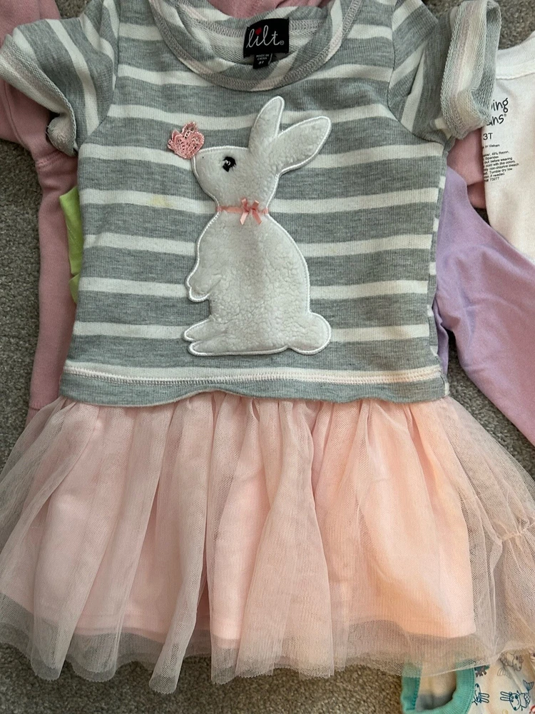 All smoke free items , no stains or rips. This lot of toddler girl clothes in size 3T includes 7 pieces with a multicolor theme for playtime. The set consists of a sweater, dress, hoodie, underwear, casual shirt, and features easy care, comfort, and stretch. Suitable for all seasons, these Jumping Beans brand items are machine washable and in good condition.