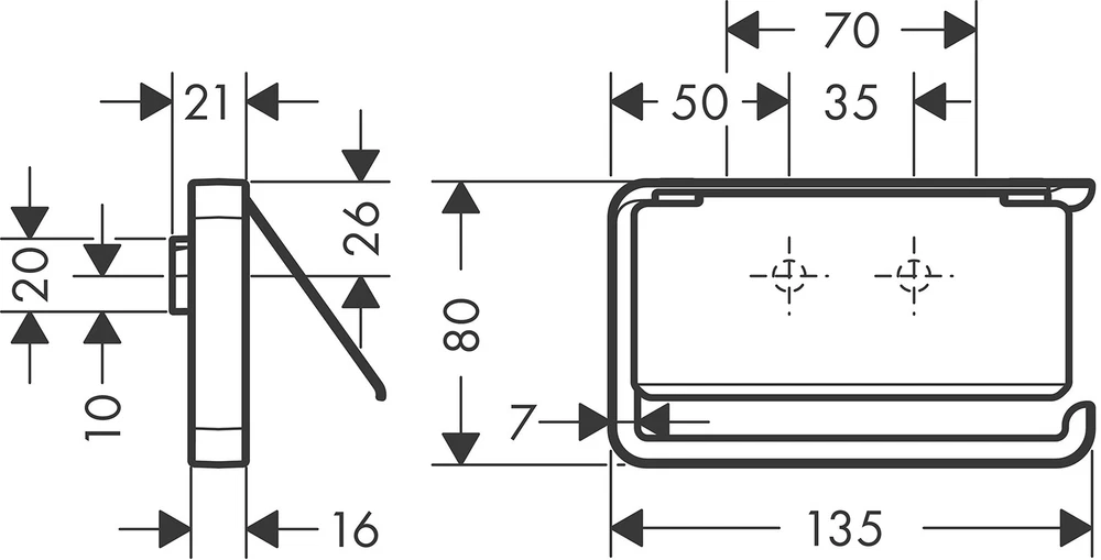 The Universal SoftSquare Accessories range reflects the brand's passion for highly functional and expertly crafted design objects for the bathroom. Combinable with a wide variety of fittings and shower products, the range provides the basis for a uniform design language across the entire bathroom. The accessories include a wall mirror, a shaving mirror, towel hooks, one and two-armed towel rails, a towel rack, a tissue box, paper roll holder, toilet brush holder, a waste bin and a shower shelf. All accessories are available in Chrome, Matte Black, and Brushed Nickel. Versatile design: the Universal Softsquare line is a collection-spanning program in a timeless, versatile design language. Perfect partner: the clear design radiates value and harmonizes well with modern fixtures such as Urquiola and Starck Wall mount design: Toilet paper holder mounts to the wall for easy access Shiny appearance: the brilliant chrome surface impresses with its long-lasting shine Pieces included: This product includes the toilet paper holder and mounting hardware Premium materials are installed in all components - for more safety and sustainability in the home