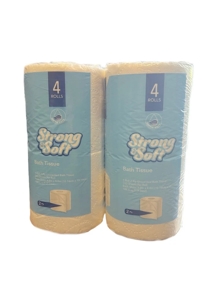 Toilet Paper Unscented Bathroom Tissue Rolls 4 Rolls (Pack of 2). 2PLY 240 Sheets Per Roll.