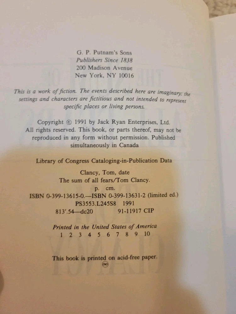 Tom Clancy- First Edition- Hardcover- SIX Book Collection. All Books are First Edition Please see pictures for condition