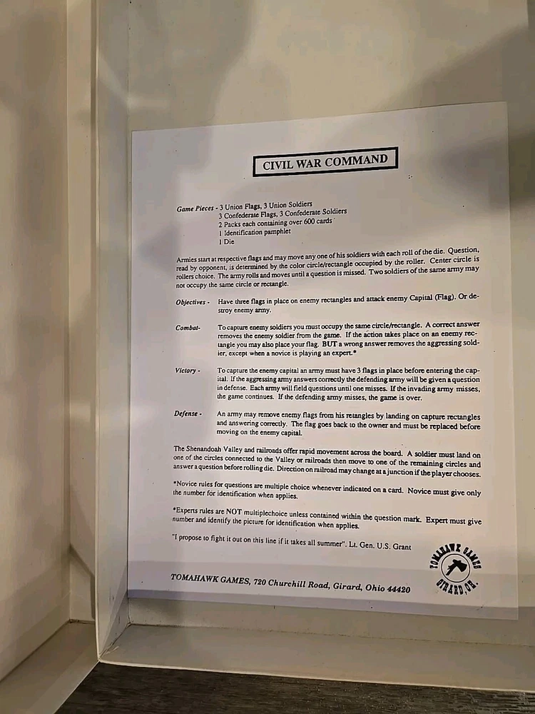 This Tomahawk Games Civil War Command Board Game from 1991 is a must-have for any history enthusiast. With a focus on the Civil War theme, this complete game is designed for 2 players or more, and is perfect for novice or expert players. The game includes all necessary components for an exciting and immersive experience, and is manufactured in the United States. The game title, Civil War Command, is a perfect addition to any board game collection. The game is categorized under Toys & Hobbies, Games, Board & Traditional Games, and Contemporary Manufacture. The aspects of the game, such as the brand, game type, year, and recommended age range, are carefully chosen to provide the reader with accurate and relevant information. Add this game to your collection today and experience the thrill of the Civil War.