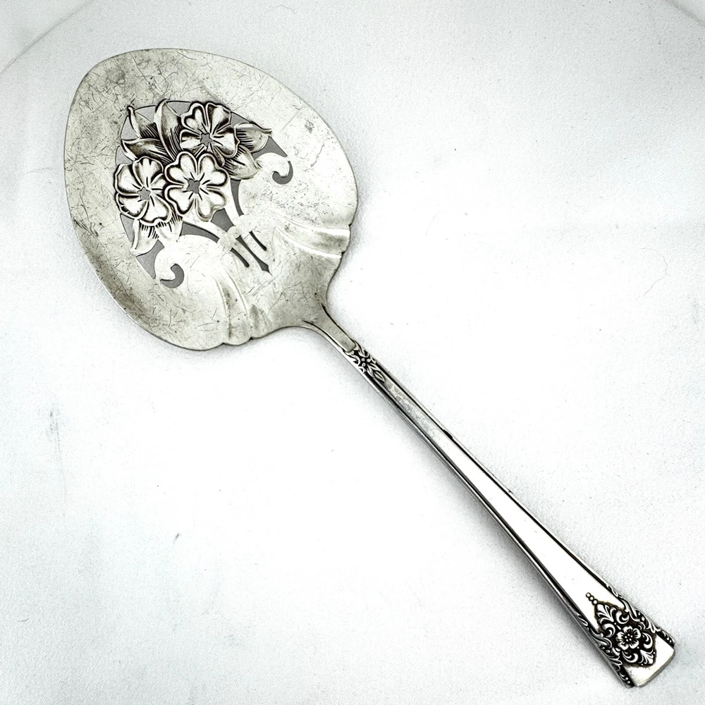 Offering one Rogers International Silver tomato server, a silverplated pierced serving spoon 7.75”. Good condition, no bends, dents, or disposal damage. There are surface scratches consistent with normal wear. Please view the photos for details and condition. Shipping is your choice of USPS Ground Advantage or USPS Flat Rate Priority at the rate determined by eBay. Measurements and photo colors are approximate. Terms of Sale: Photos are of the actual item you will receive and sold "as is". Placing an order is your agreement that you know what you are buying, have viewed the photos and find the condition acceptable. If you have any questions or concerns about your order, contact me through eBay Messages. Please inspect your item upon arrival and contact me if there are any problems so we may work out a solution, before you leave feedback or request a refund. No returns please.