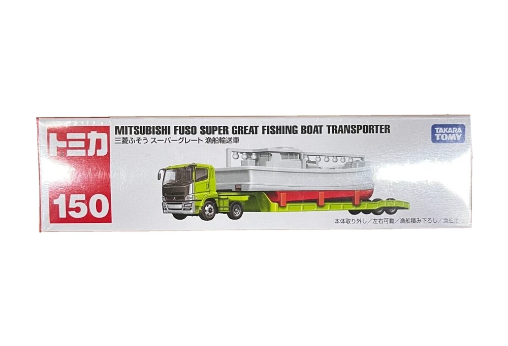Takara Tomy Long Type Series NO.150 Mitsubishi Fuso Super Great Fishing Boat Transporter Product Information: Name NO.150-05 Mitsubishi Fuso Super Great Fishing Boat Transporter Scale N/A Color N/A Released March 18, 2023 Material Alloy, Plastic Feature Metal Structure Origin Vietnam Remark Not suitable for children under 3 years old Function table: Functional parts Movable Doors ✘ Headlamps ✘ Boat(remove) ✓ Suspension ✘ Others N/A Notes: Its front and back portions can be separated, and its back can rotate left to right. There are not listed the all items, if you need other models, please contact me or leave a message. Shipping time: For US SpeedPAK Standard shipping is about 8 ~ 12 working days with full tracking. For international standard shipping is about 10 ~ 19 working days with full tracking.