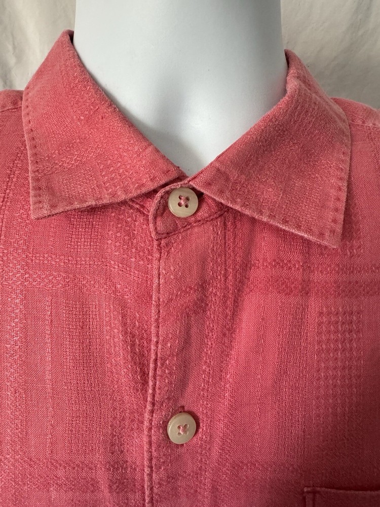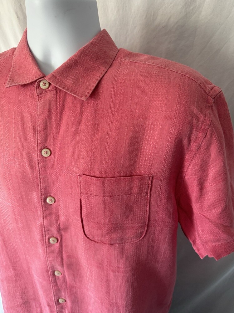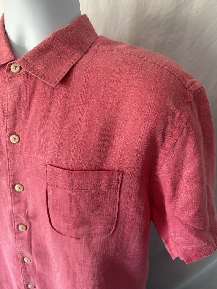Tommy Bahama Men's Shirt Item Description - Short sleeve, Solid Pink Textured Shirt Condition - Excellent! Size - Men's Large (See Measurements) Material - 100% Silk Measurements – Chest (Armpit-Armpit): 24'' Front Length (Collar-Bottom): 27'' Back Length (Shoulder-Bottom): 29'' *All measurements are taken from items laid flat* **All Items Come From Smoke-Free Environment** Shipping & Payment Information All Items Will Be Shipped USPS First Class Or Priority With Tracking Information (Based On The Weight Of Your Order). I Accept Paypal And I Appreciate Payment Within 2 Days Of Purchase/Auction. Customers Who Do Not Pay Will Be Reported 4 Days After Purchase/Auction. Thank you so much for your interest in this item! If you have any questions, please message me! Good luck & Happy Shopping!