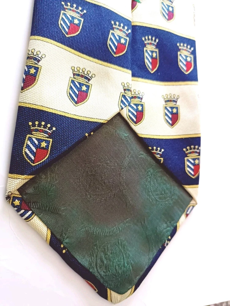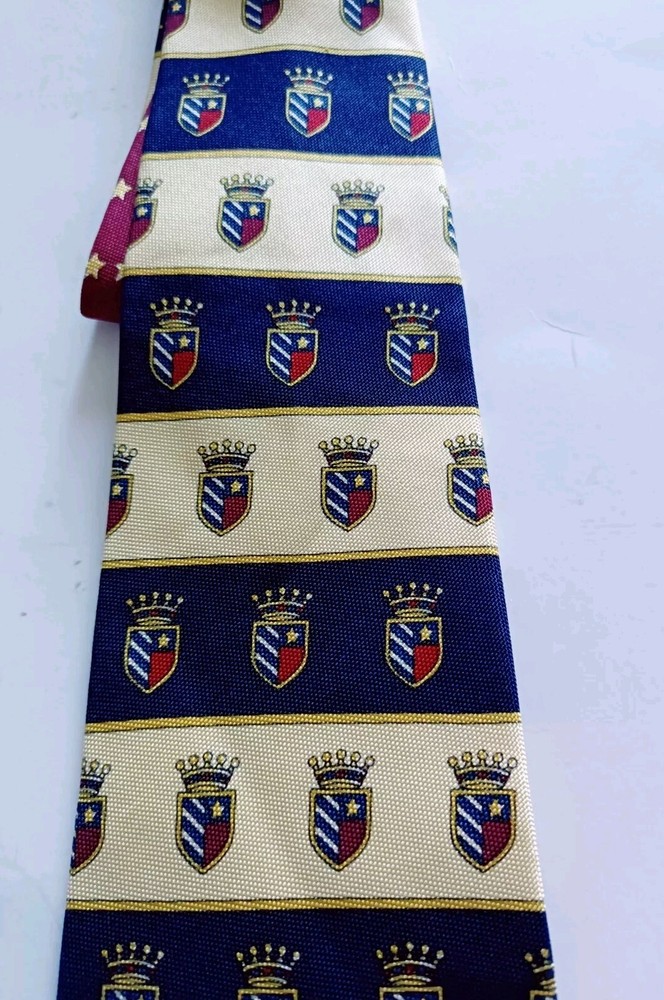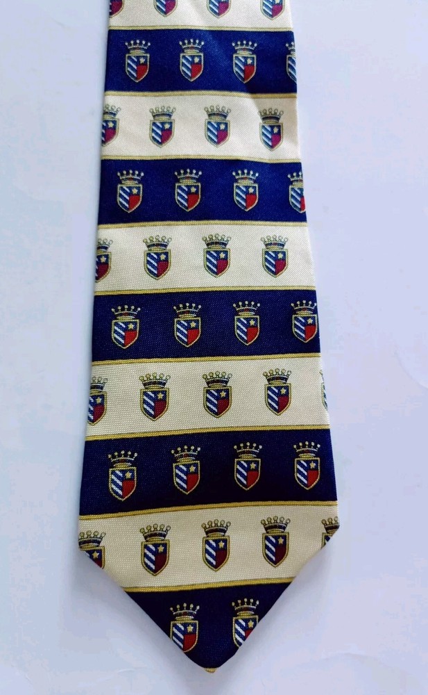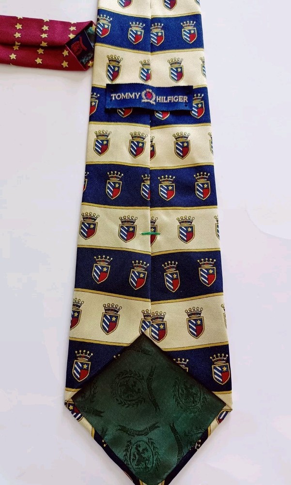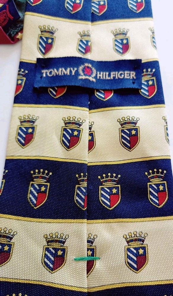Tommy Hilfiger Neck Crest Crown Tie 100% Italian Silk Yellow Red Navy Blue Vintage Excellent Pre-owned Condition