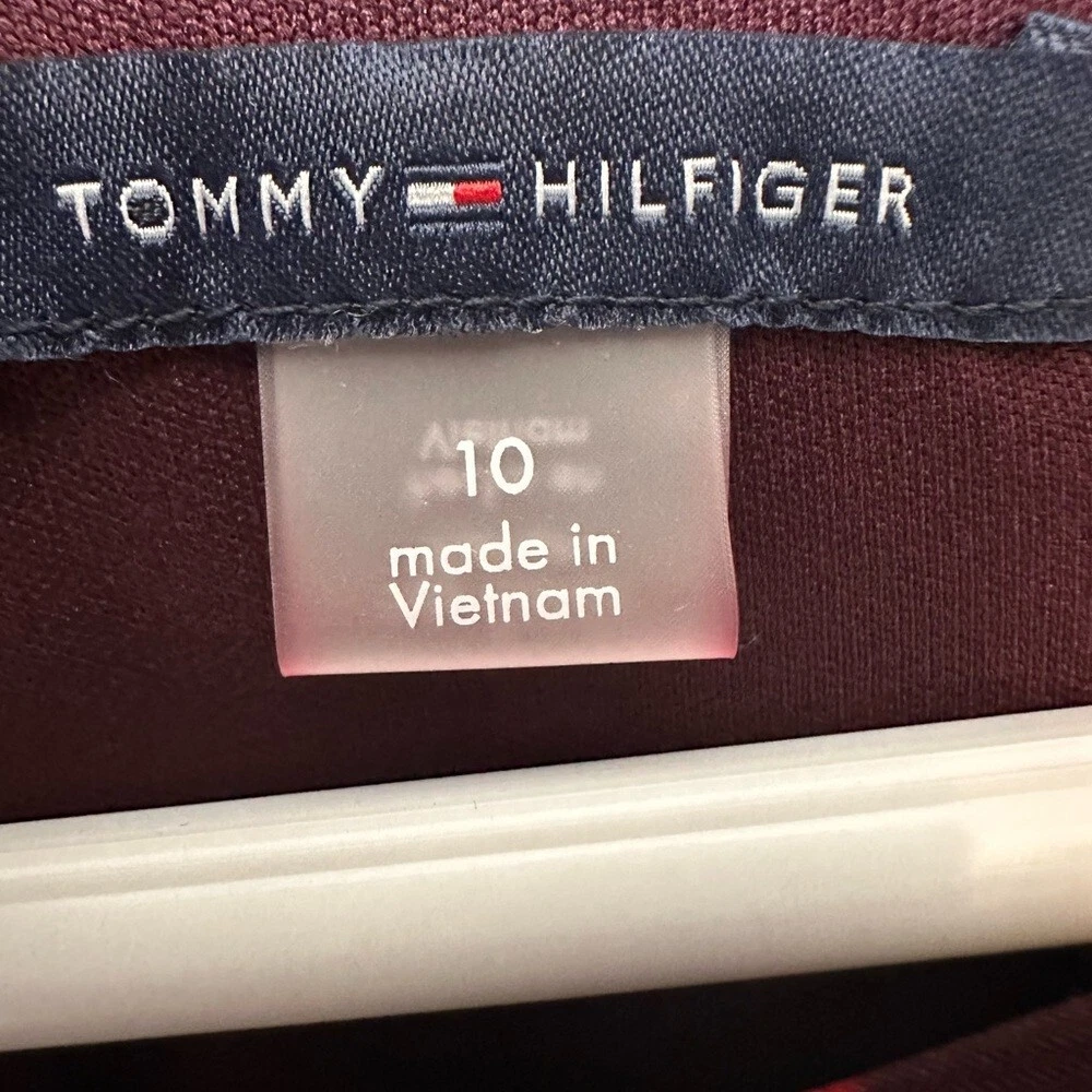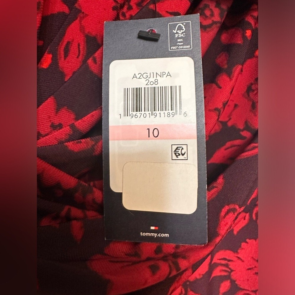 Tommy Hilfiger Black & Red Floral Fit & Flare Dress Round Neck Flowers NWT. Size 10. Jersey knit. 3/4 sleeve. Ruched waist.