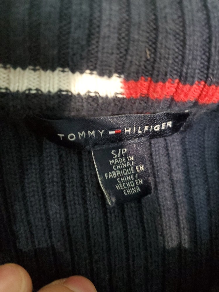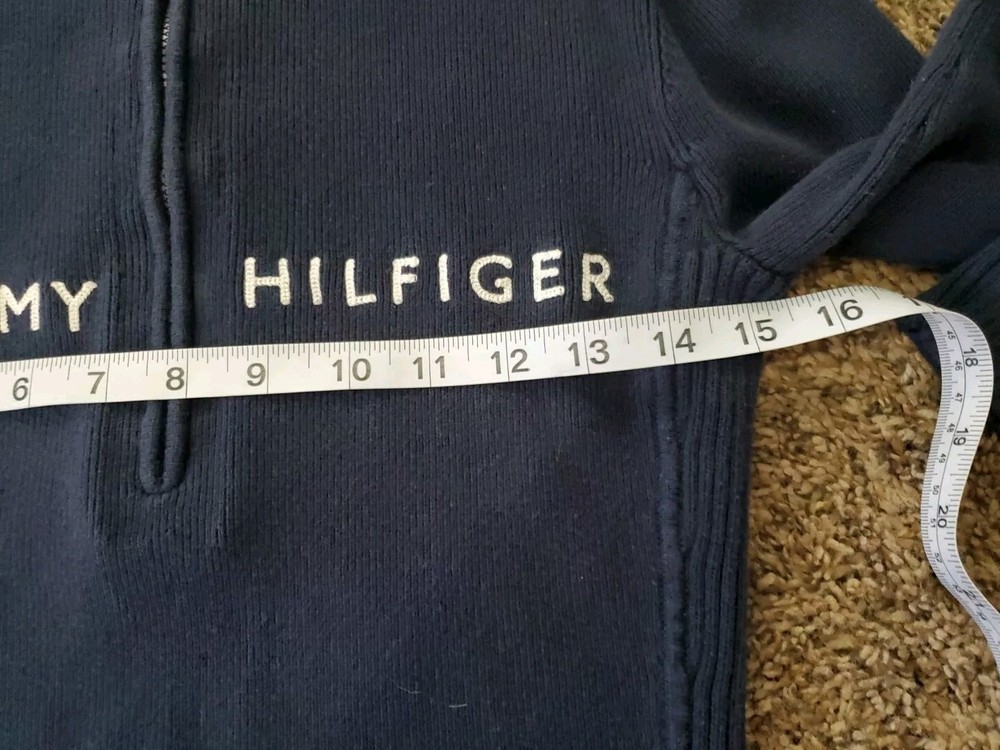 Tommy Hilfiger Blue Ribbed Thick Knit Quarter Zip Cardigan for Women & Men Small Cozy Warm