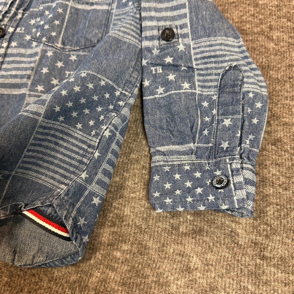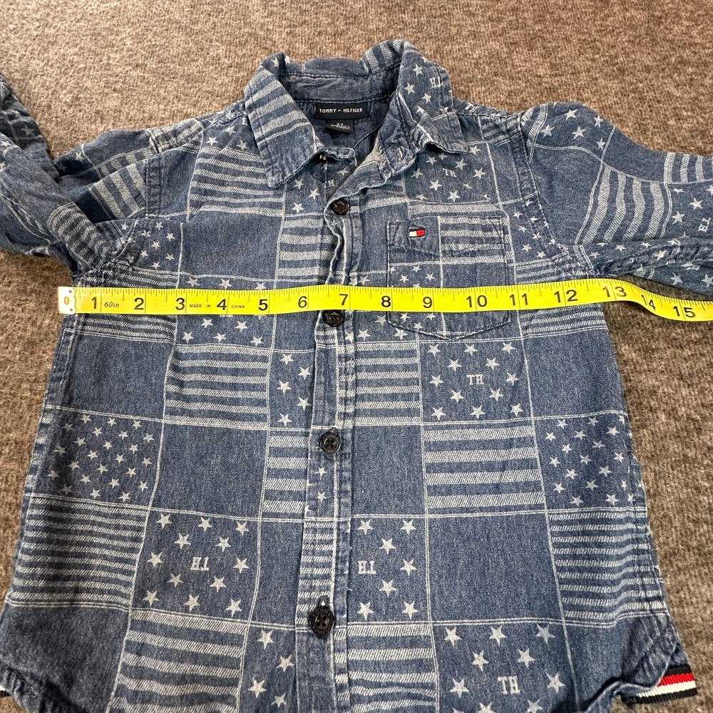 Tommy Hilfiger Boys 3T Long Sleeve 100% Cotton Button Up Denim Patchwork Shirt Gender: Boys' Brand: Tommy Hilfiger Size: 3T Color: Blue Stars and Stripes Patchwork Long Sleeves with Button Cuffs Button Front Collared One Chest Pocket with Tommy Logo 100% Cotton Made in Bangladesh Machine Washable Pre-Owned in Excellent Condition (EUC) *Colors may vary depending on lighting and individual viewing devices Offers Welcomed Bundle Discounts Available Fast Shipping 5 Star Seller Thank you for shopping my closet! Location 3 - 1110 Casual, Everyday, Denim, Fall, Winter, Spring, School, Daycare, Patchwork, American, Patriotic, Stars and Stripes, Cotton, Preppy