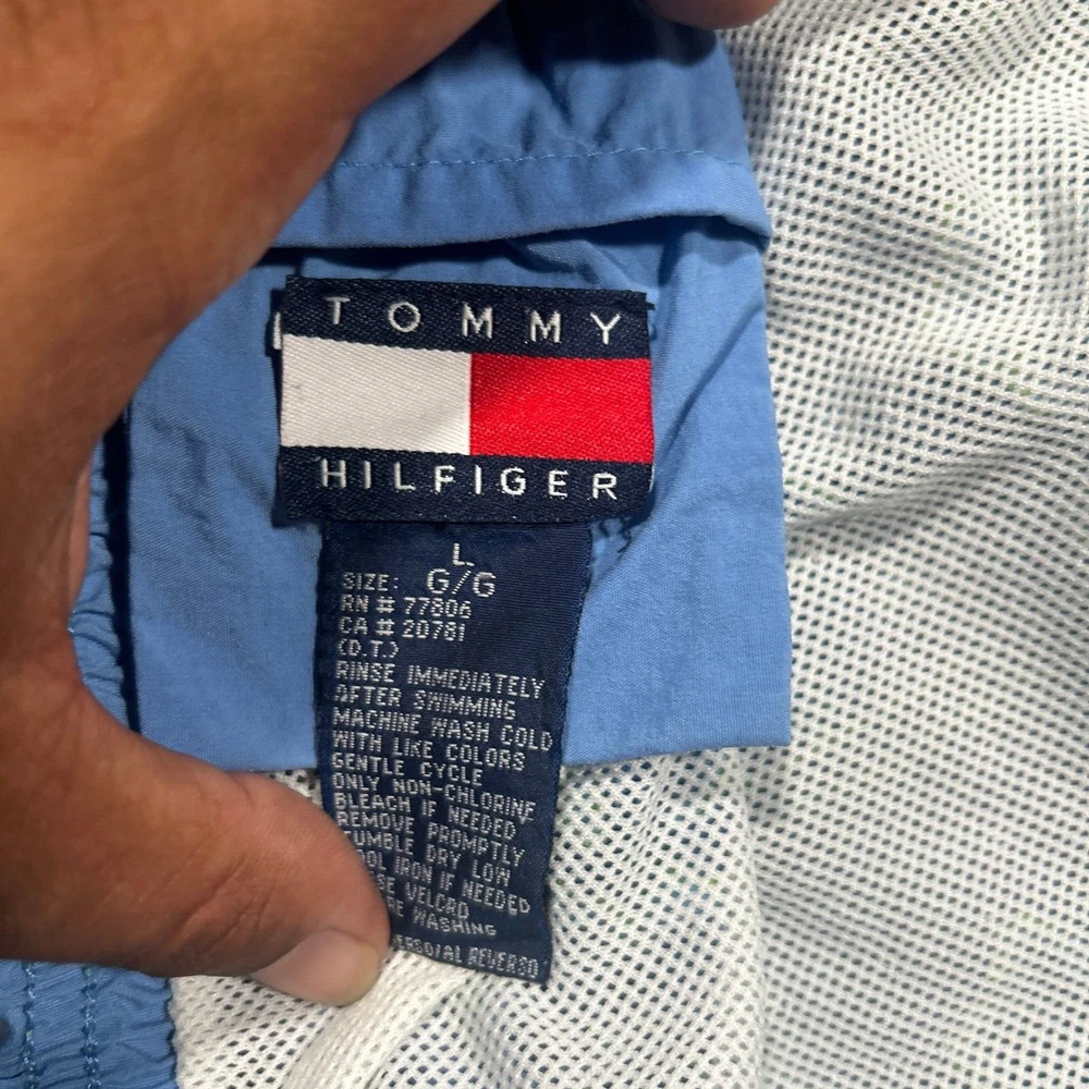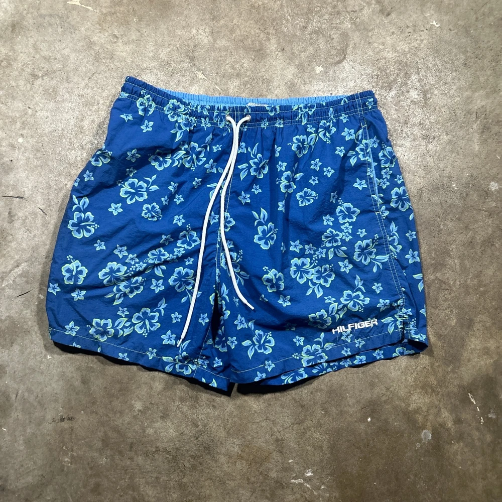 This men's swimwear from Tommy Hilfiger features a colorful Hawaiian print and a drawstring closure. Made for the beach or pool, these trunks are available in size large and are brand new without tags. The swim bottom style is perfect for a casual day in the sun, while the features of the trunks provide both comfort and functionality. Whether you're looking for a stylish addition to your swimwear collection or simply need a new pair of trunks for the summer, these Tommy Hilfiger swim trunks are an excellent choice.